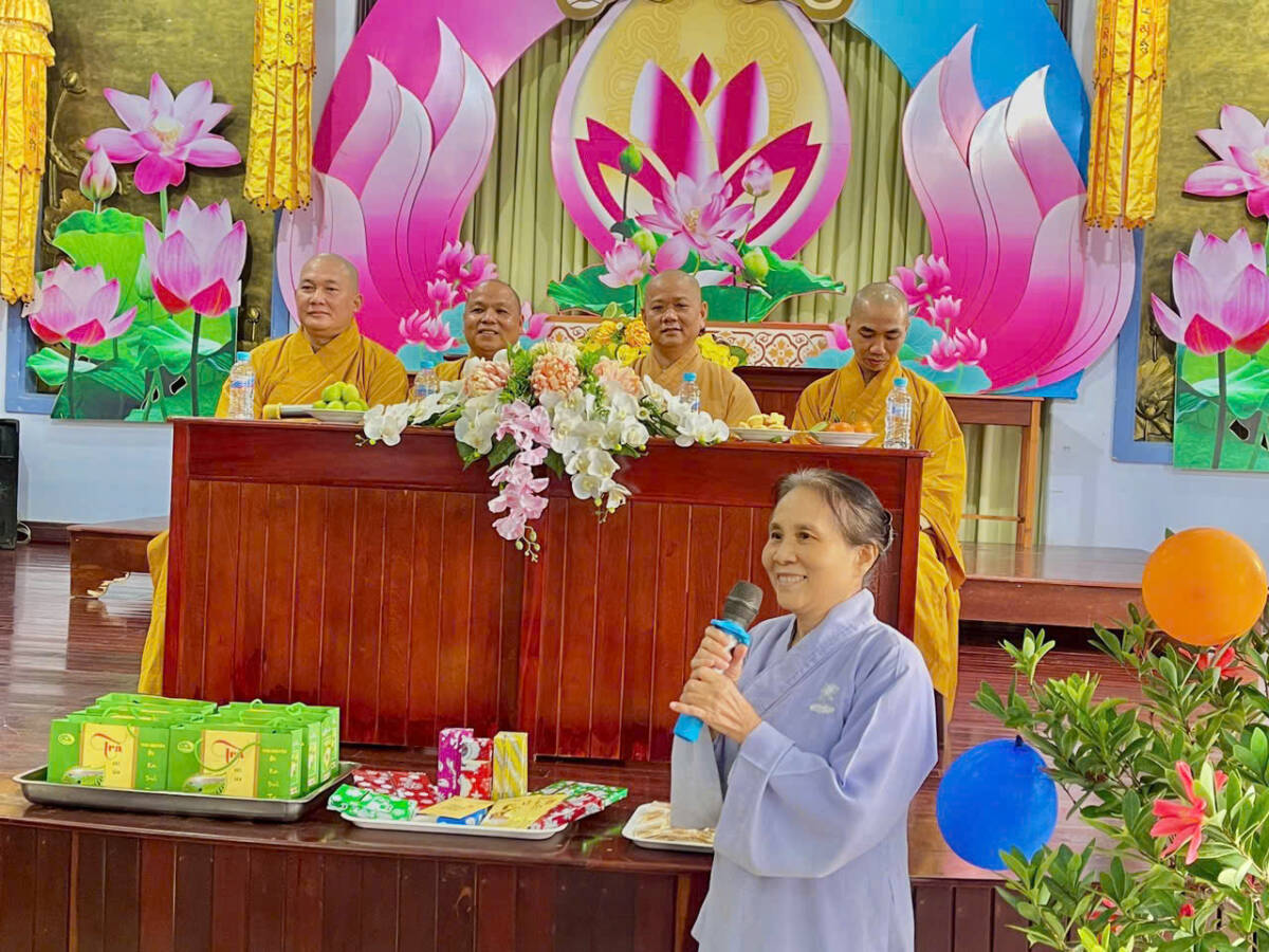 Sau đó, đại diện học viên khóa II lớp Giáo lý Phật pháp Vũng Tàu dâng lời tác bạch tri ân và mừng khánh tuế chư tôn đức.