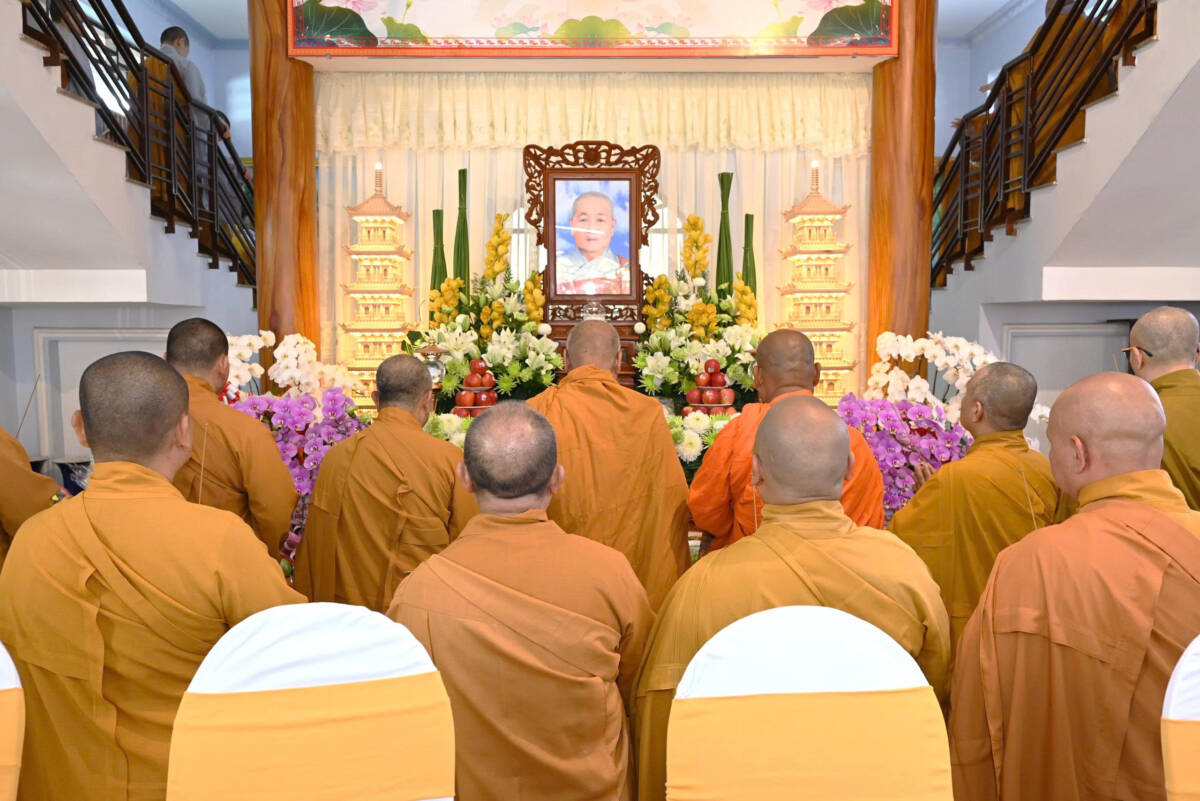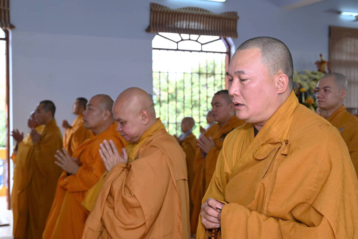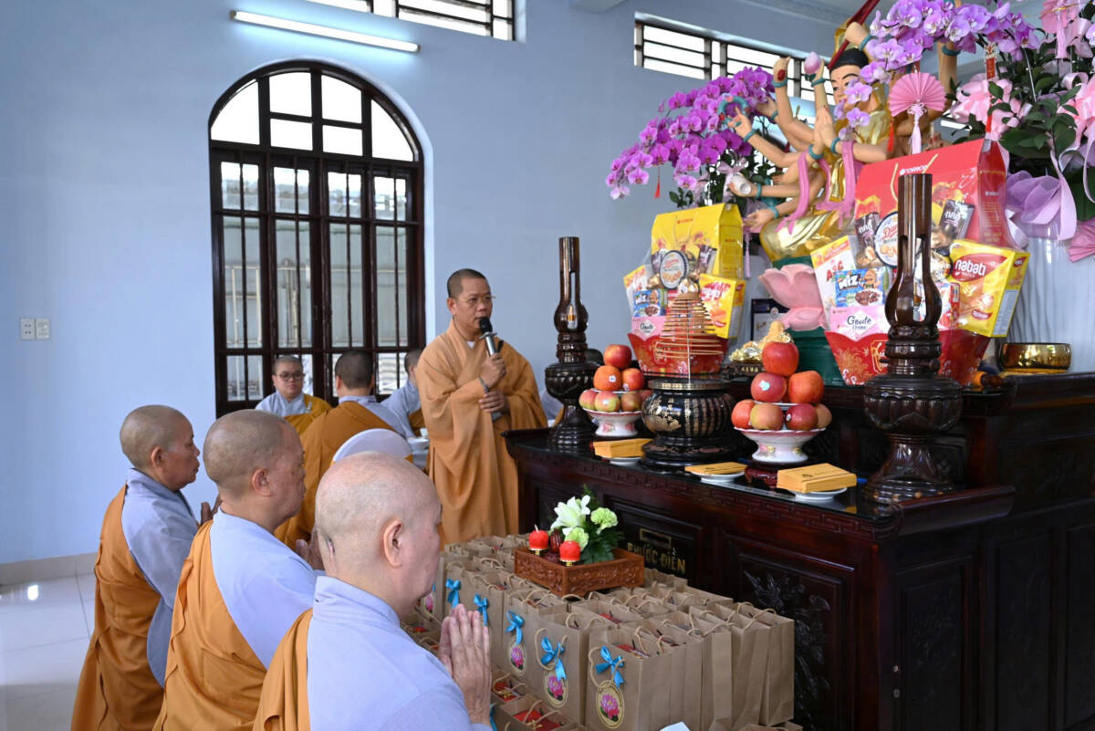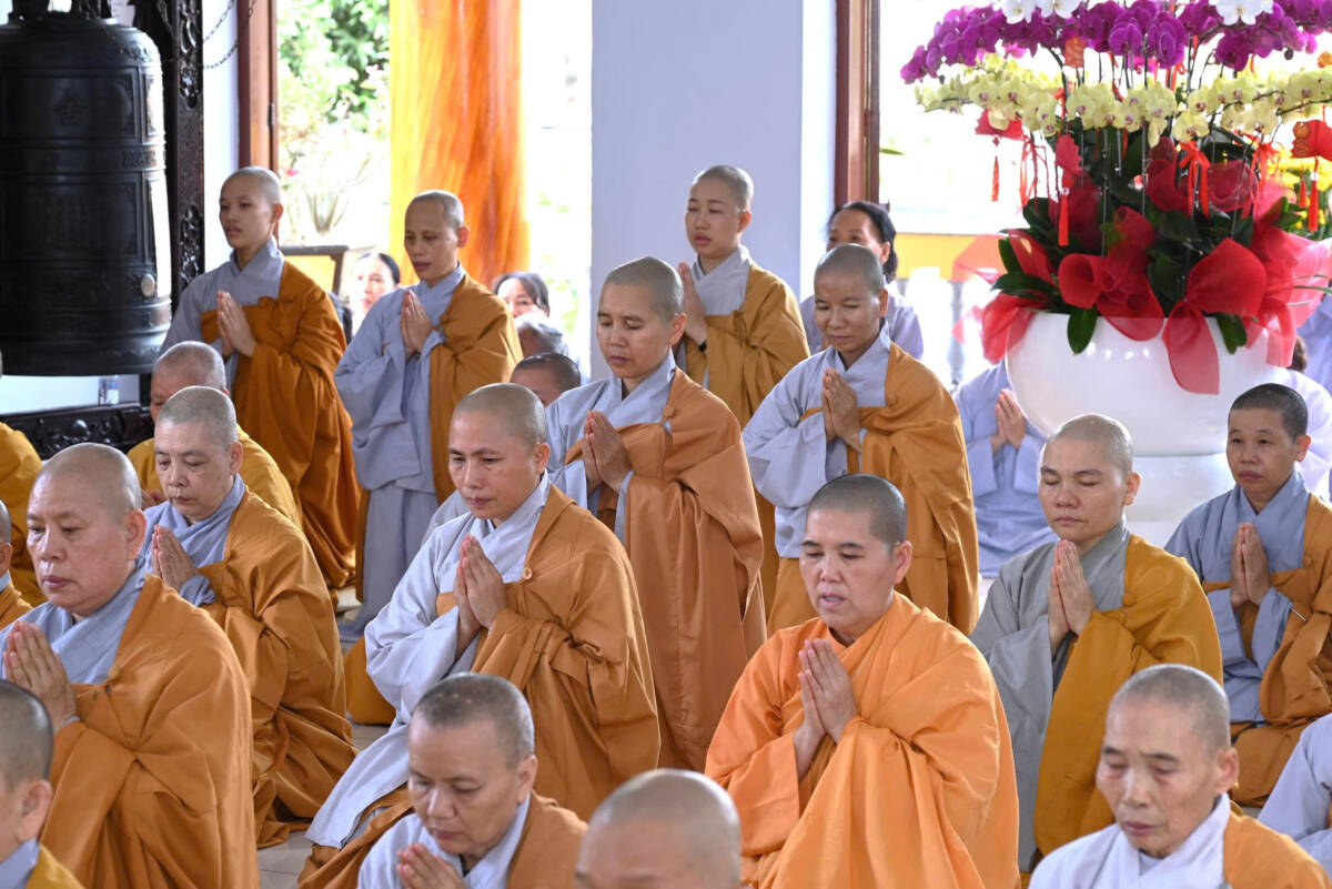 Tại chánh điện, chư tôn đức thực hiện khóa lễ Ngọ thời. Sau đó, chư tôn đức đã thắp hương tưởng niệm cố Ni trưởng Thích nữ Từ Tri, cầu nguyện Giác linh Ni trưởng cao đăng Phật quốc.