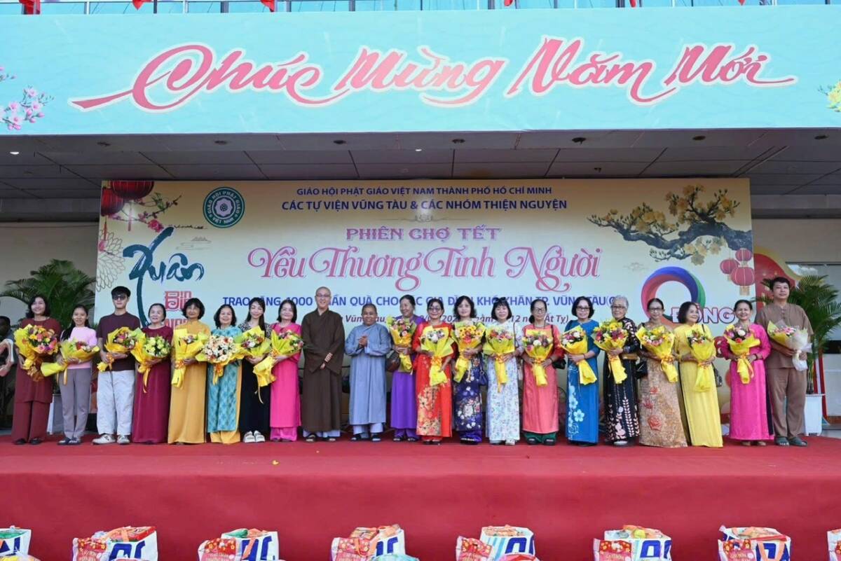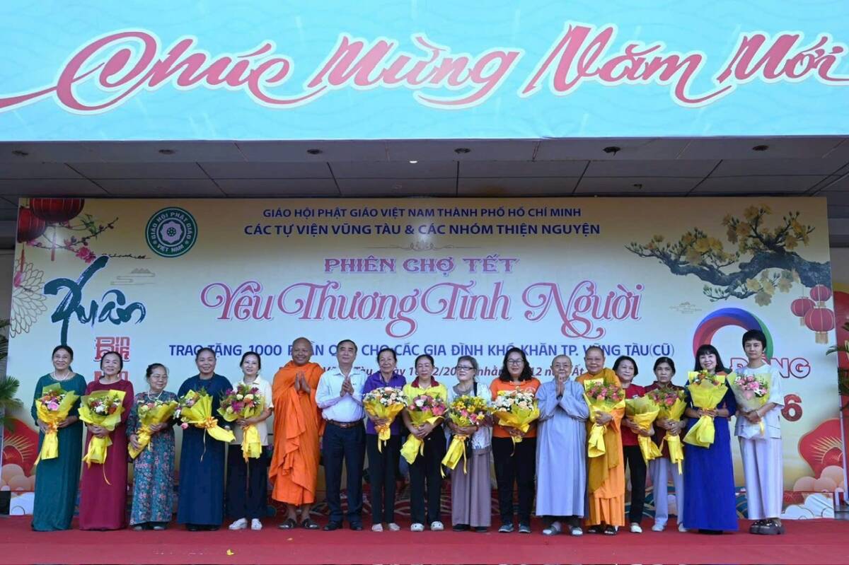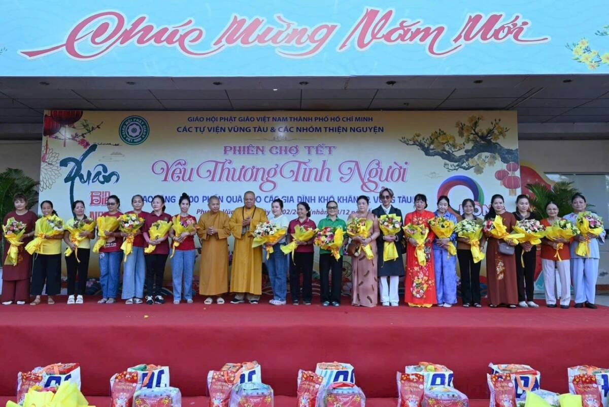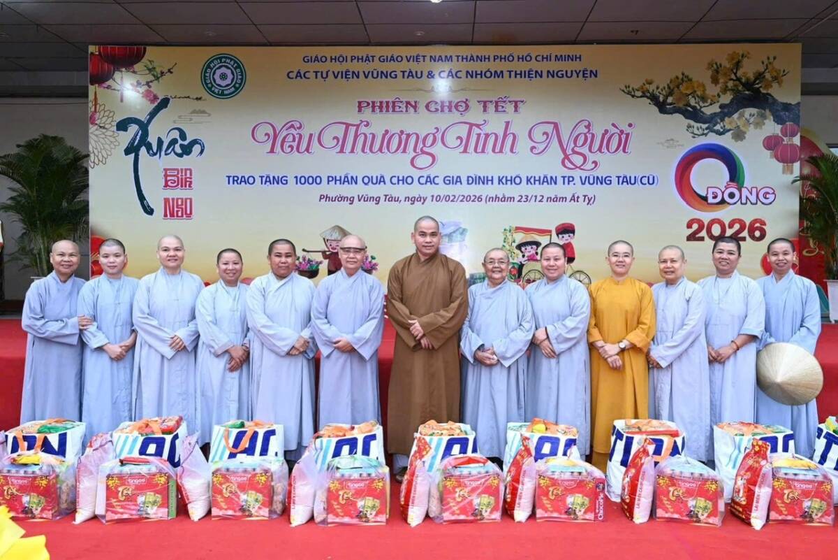 PGĐS – Sáng ngày 10/2 (nhằm ngày 23/12/Ất Tỵ), tại Nhà Văn hóa Thanh niên (phường Vũng Tàu, TP.HCM) Ni sư Thích nữ Nguyên Xuân, trụ trì chùa Vạn Phước phối hợp cùng các tự viện khu vực Vũng Tàu và các nhóm thiện nguyện tổ chức “Phiên Chợ Tết 0 đồng” trao 1000 phần quà cho bà con có hoàn cảnh khó khăn trên địa bàn các phường Vũng Tàu, Tam Thắng, Rạch Dừa, Phước Thắng, xã Long Sơn (TP.HCM) nhân dịp xuân Bính Ngọ 2026.