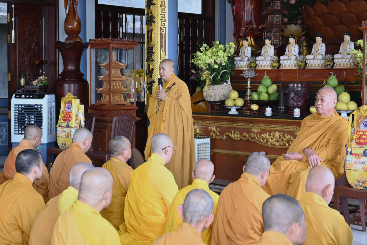 Đáp lời, chư vị Hòa thượng chứng minh tán thán những hoạt động Phật sự của Tăng Ni, đặc biệt trong công tác an sinh xã hội với nhiều chương trình thiện nguyện ý nghĩa thiết thực đối với bà con những dịp Tết đến, lan tỏa được tinh thần từ bi của đạo Phật đến mọi người. Đồng thời, chư tôn giáo phẩm cũng chúc nguyện chư tôn đức Tăng Ni Phật tử bình an, hạnh phúc, nhiều điều may mắn trong năm mới 2026.