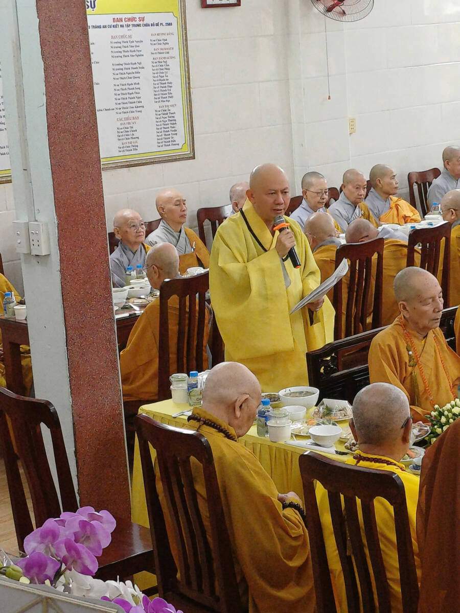 Sau cùng, trong không khí thắm tình đạo vị, đại diện Ban Tổ chức đã dâng lời cảm tạ và cung thỉnh chư Tôn đức tác pháp quá đường, thọ trai.