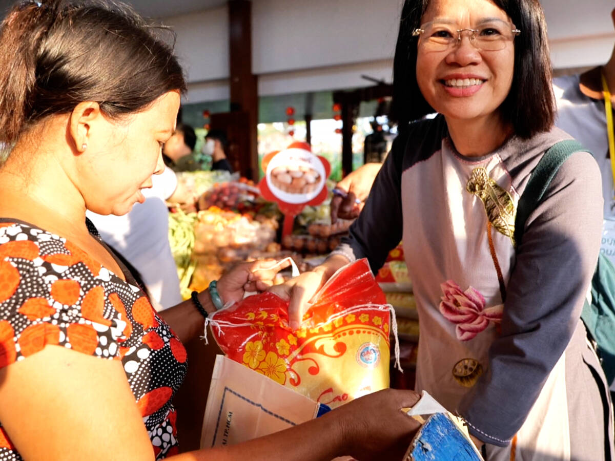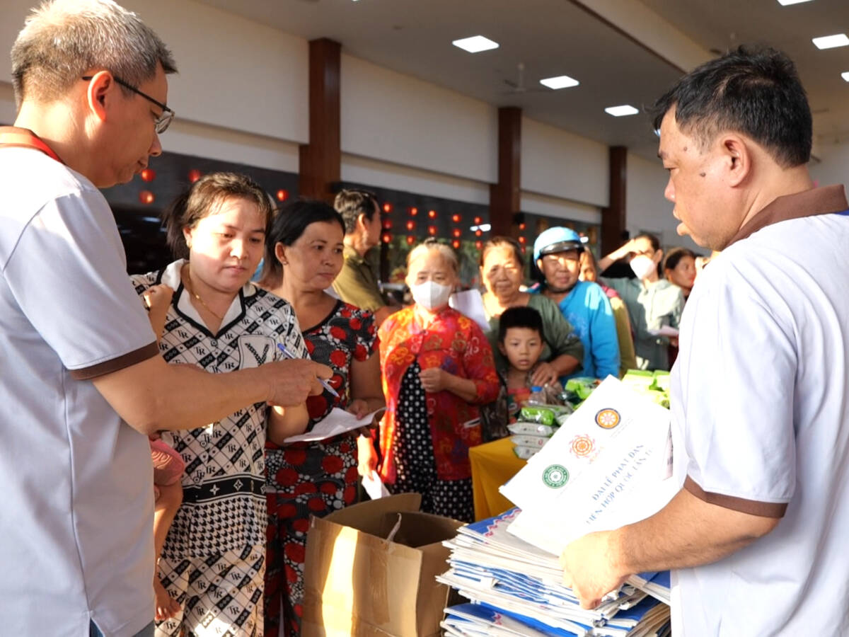 Bên cạnh các gian hàng nghĩa tình, Ban Tổ chức còn bố trí buffet chay miễn phí phục vụ xuyên suốt chương trình, tạo không gian sum vầy, ấm áp trong tinh thần thanh tịnh và đạo vị. Đồng thời, đội ngũ y, bác sĩ đã trực tiếp thăm khám, tư vấn sức khỏe và phát thuốc miễn phí cho người dân, đặc biệt là người cao tuổi và các trường hợp có bệnh lý nền, góp phần nâng cao chất lượng chăm sóc y tế cộng đồng.
