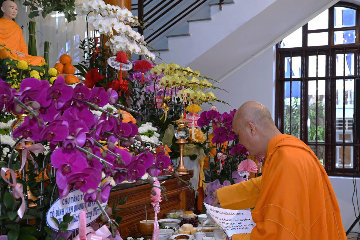 Trước Giác linh đài, chư Tôn đức Tăng Ni đã thành kính dâng hương tưởng niệm, tri ân Tổ sư Huệ Nhựt – khai sáng hệ phái Khất sĩ Đại thừa, người có công đóng góp cho phong trào chấn hưng Phật giáo nước nhà những năm nửa đầu thế kỷ 20.