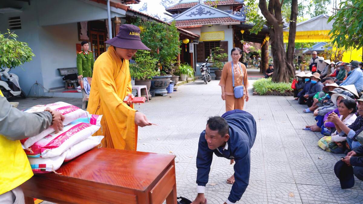 Nhân dịp Tất niên, thể hiện tinh thần từ bi cứu khổ của đạo Phật, đạo tràng đã tổ chức trao tặng 300 phần quà đến bà con có hoàn cảnh khó khăn tại địa phương. Mỗi phần quà gồm 100.000 đồng tiền mặt, 01 bao gạo 10kg và 01 áo ấm, góp phần sẻ chia, mang đến hơi ấm nghĩa tình trong những ngày cuối năm.