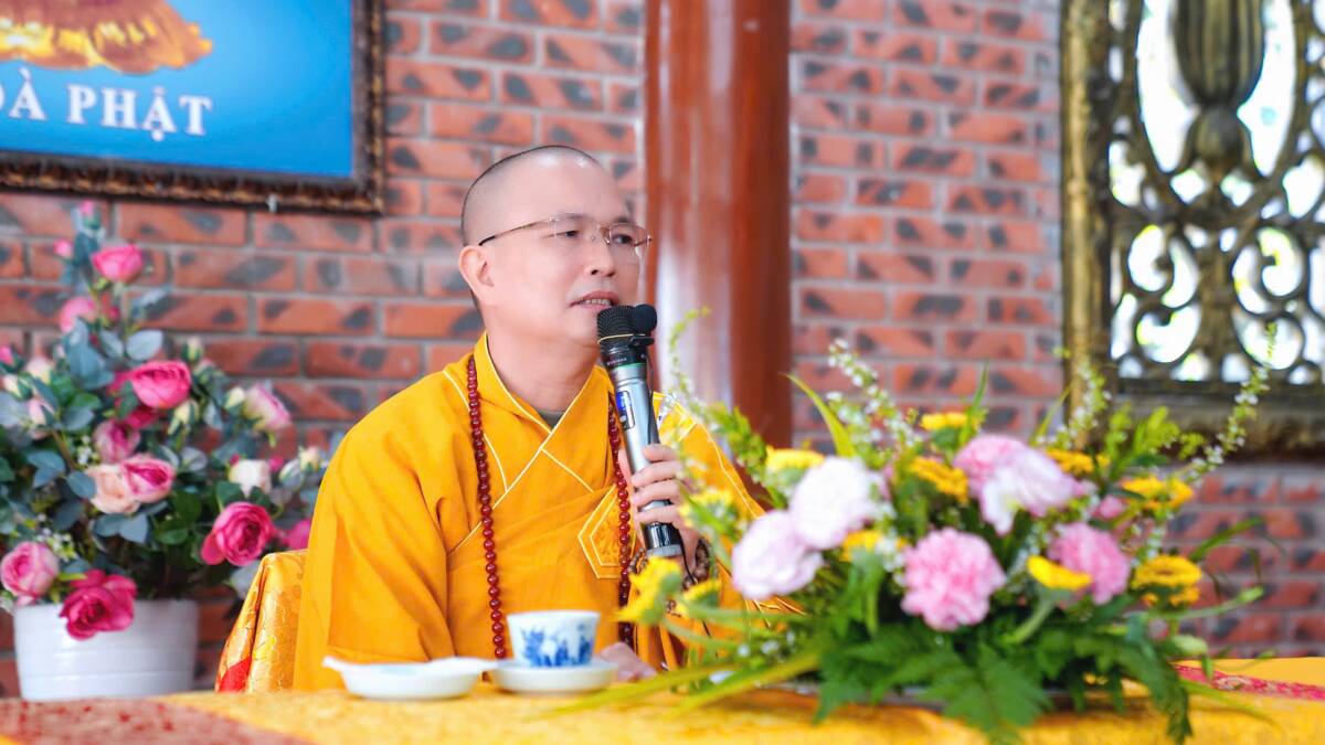 Đến 9 giờ, đạo tràng trang nghiêm cung nghinh Đại đức Thích Trung Định – Ủy viên Thường trực Ban Văn hóa Trung ương GHPGVN, Phó Thư ký Phân ban Hoằng pháp Hải ngoại Trung ương, Phó Ban Hoằng pháp GHPGVN TP. Huế – quang lâm thuyết giảng với đề tài “Hoa khai kiến Phật”. Thời pháp thoại đã giúp Phật tử thâm nhập ý nghĩa tu học, chuyển hóa nội tâm, hướng đến đời sống an lạc và tỉnh thức.
