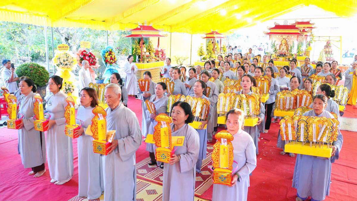 Tham dự đại lễ có chư Tôn đức Tăng Ni, đại diện chính quyền và cơ quan công an địa phương, cùng đông đảo làng, họ, tộc và hơn 500 Phật tử, thiện tín gần xa đồng về tham dự và hộ trì Phật sự.
