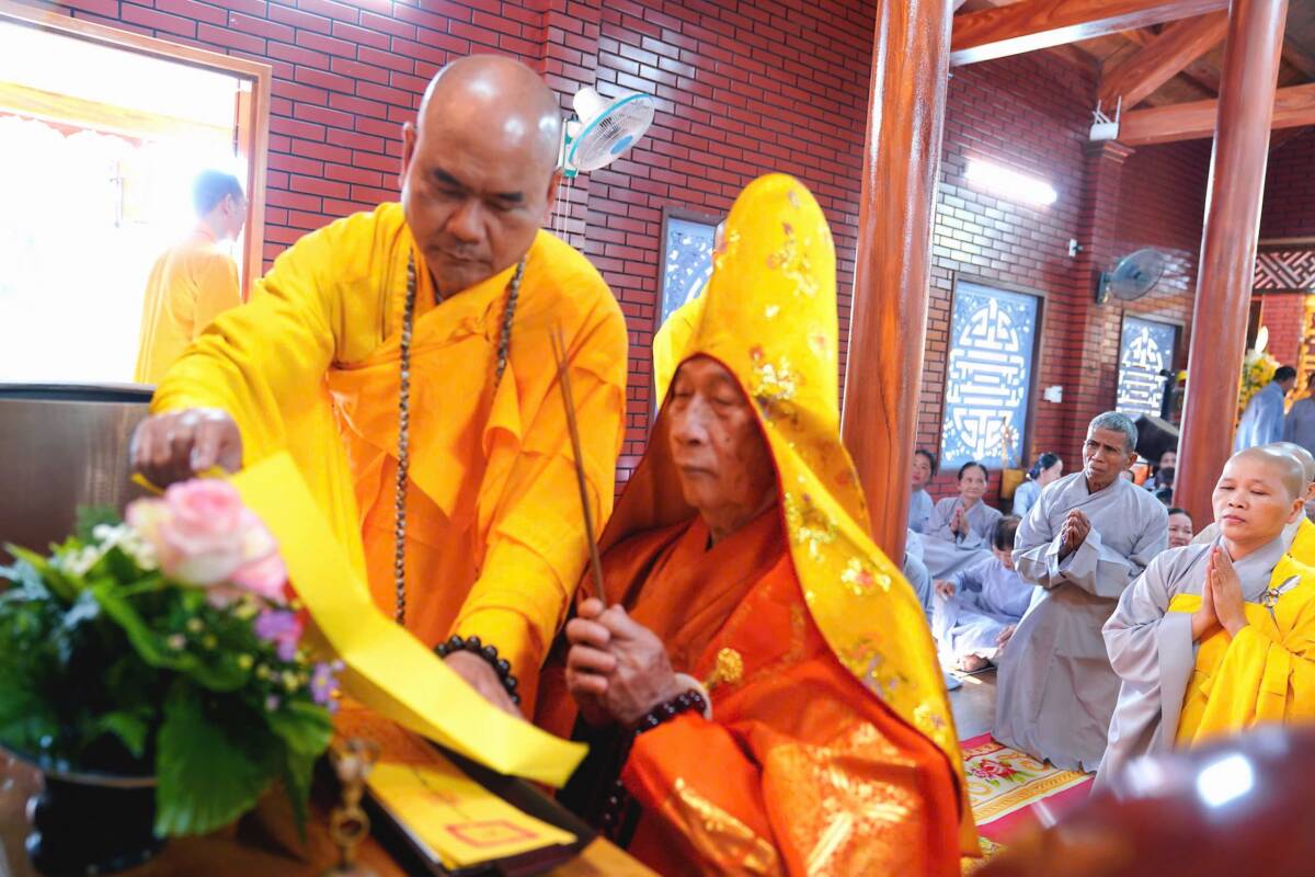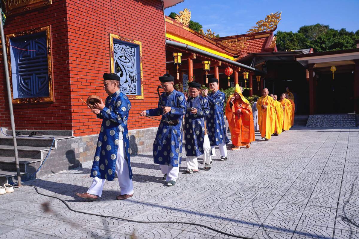 Các nghi thức được cử hành theo truyền thống Phật giáo, do Ban Kinh sư gồm 6 vị gồm: