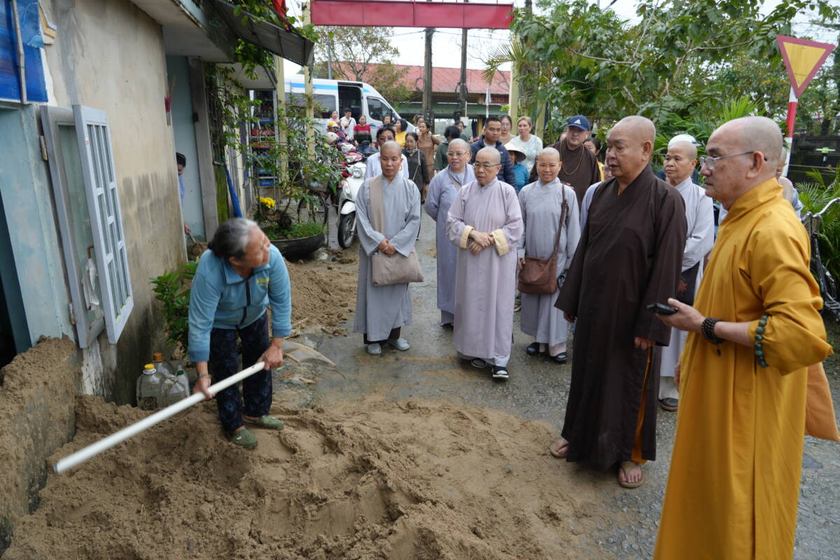 Đoàn cũng đến các khu vực bị cô lập, trao quà tận tay đến những hộ dân có nhà bị ngập sâu, không thể di chuyển ra ngoài do nước lũ. Đại diện phái Đoàn đã thăm hỏi, chia sẻ những mất mát do bão lũ gây ra; tin tưởng bà con vững tâm vượt qua khó khăn, sớm ổn định cuộc sống.