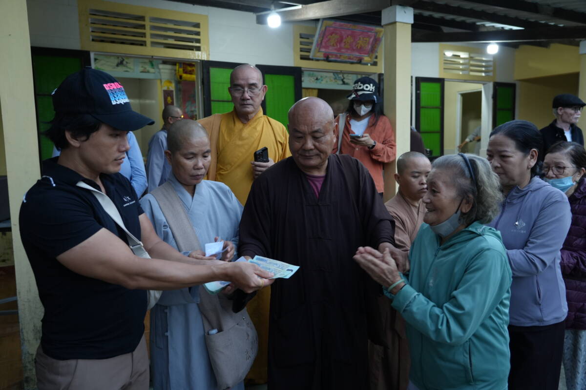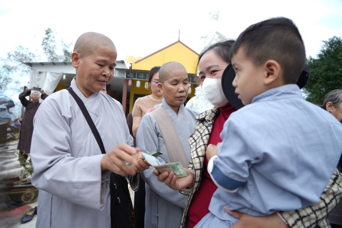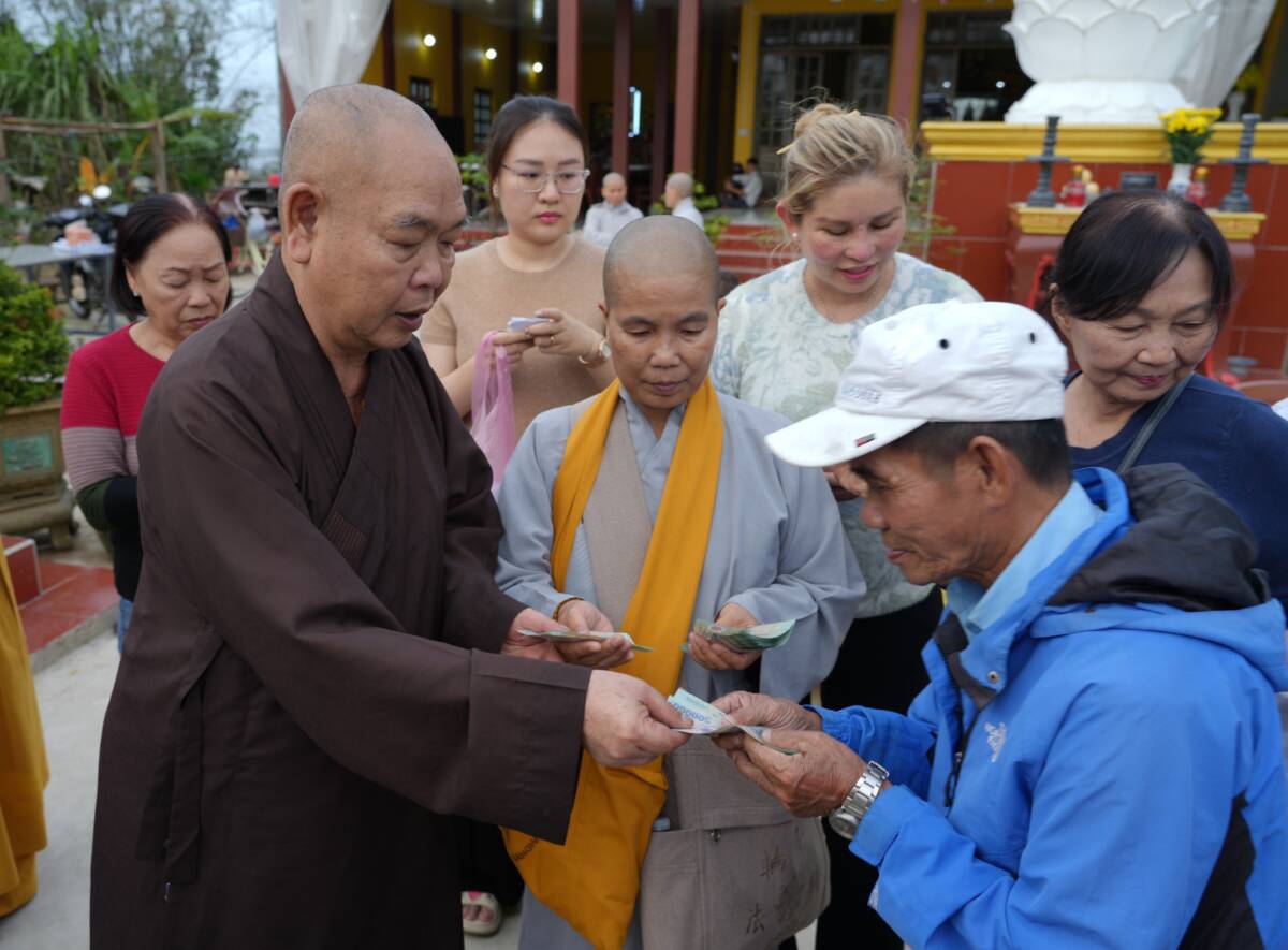 Dẫn đoàn là HT.Thích Huệ Công, Ủy viên HĐTS, Phó Ban Trị sự GHPGVN TPHCM kiêm Trưởng Ban Đại diện Phật giáo người hoa Tp.HCM; HT Thích Chơn Tịnh, Phó Ban Từ Thiện XH Báo Giác Ngộ, trụ trì chùa Thường Quang, đồng Trưởng Đoàn, tham gia Đoàn có HT.Thích Lệ Lạc – UV HĐTS, Phó Trưởng BTS GHPGVN tỉnh Vĩnh Long; bà Tô Thị Bích Châu – Nguyên Phó Chủ tịch Ủy ban Trung ương MTTQVN; bà Võ Thị Dung – Nguyên Phó Bí thư Thành uỷ TPHCM; bà Trần Kim Yến – Nguyên Chủ nhiệm Ủy ban Kiểm tra Thành uỷ TPHCM, cùng chư tôn đức Phật giáo người hoa; chư tôn đức các tự viện liên phường Chánh Hưng, Bình Đông, Phú Định và quý mạnh thường quân tháp tùng.
