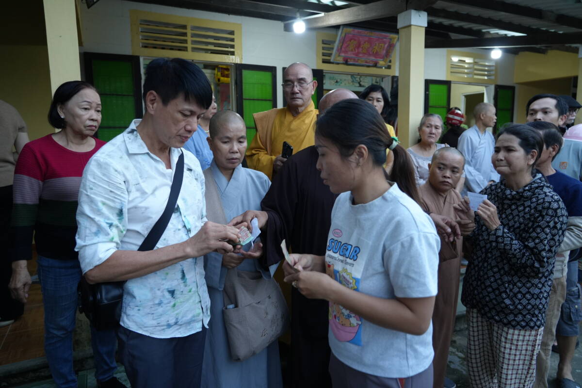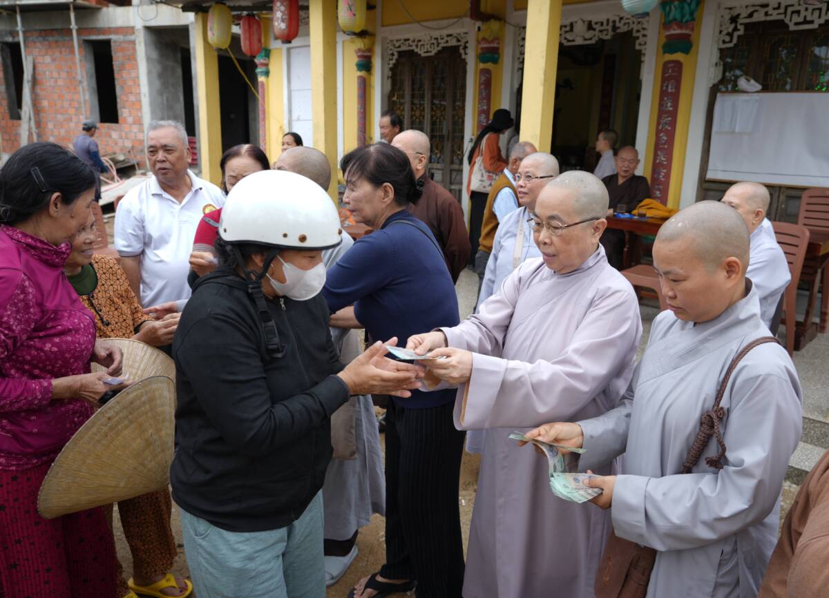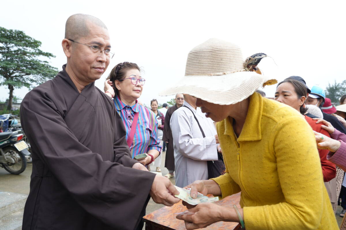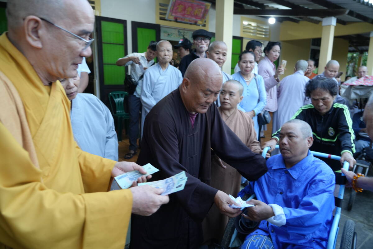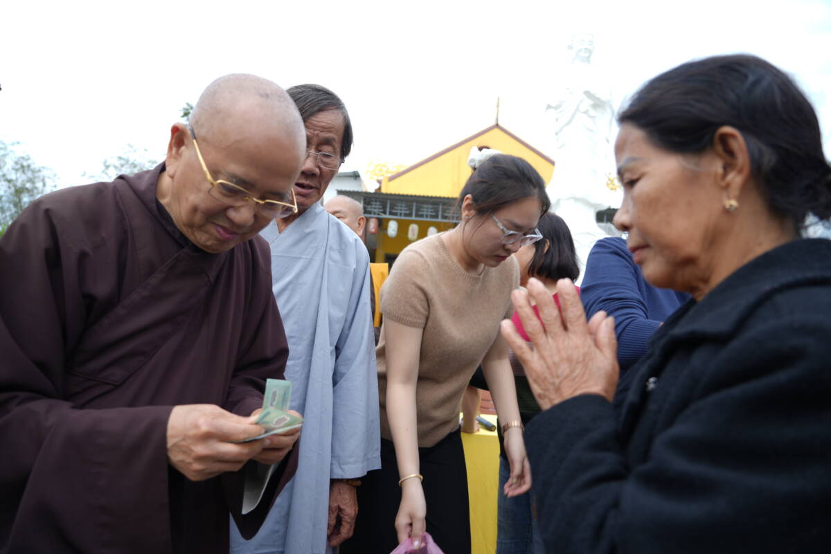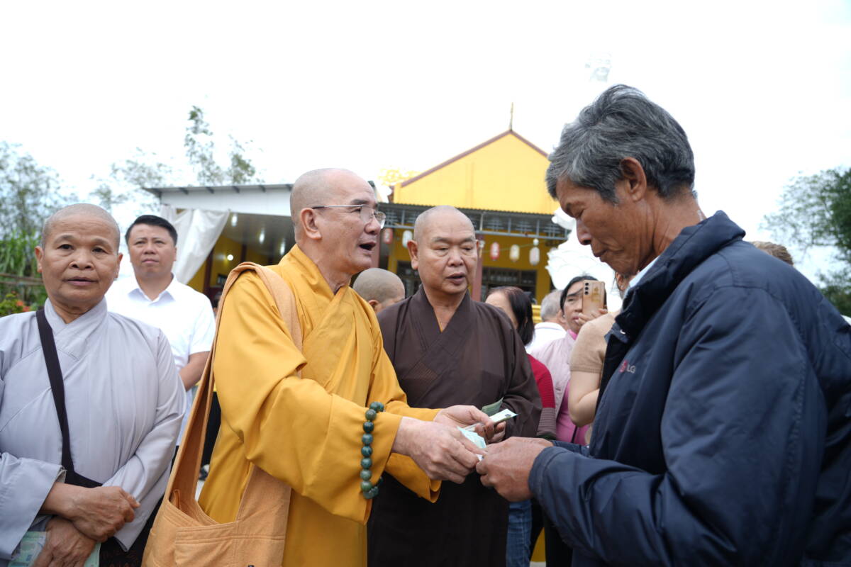 Dẫn đoàn là HT.Thích Huệ Công, Ủy viên HĐTS, Phó Ban Trị sự GHPGVN TPHCM kiêm Trưởng Ban Đại diện Phật giáo người hoa Tp.HCM; HT Thích Chơn Tịnh, Phó Ban Từ Thiện XH Báo Giác Ngộ, trụ trì chùa Thường Quang, đồng Trưởng Đoàn, tham gia Đoàn có HT.Thích Lệ Lạc – UV HĐTS, Phó Trưởng BTS GHPGVN tỉnh Vĩnh Long; bà Tô Thị Bích Châu – Nguyên Phó Chủ tịch Ủy ban Trung ương MTTQVN; bà Võ Thị Dung – Nguyên Phó Bí thư Thành uỷ TPHCM; bà Trần Kim Yến – Nguyên Chủ nhiệm Ủy ban Kiểm tra Thành uỷ TPHCM, cùng chư tôn đức Phật giáo người hoa; chư tôn đức các tự viện liên phường Chánh Hưng, Bình Đông, Phú Định và quý mạnh thường quân tháp tùng.