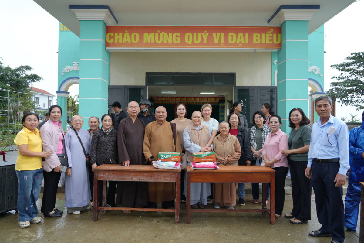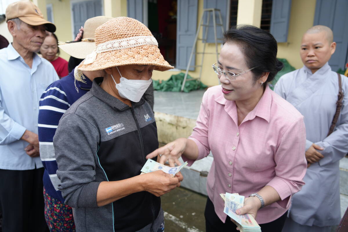 Đoàn cũng đến các khu vực bị cô lập, trao quà tận tay đến những hộ dân có nhà bị ngập sâu, không thể di chuyển ra ngoài do nước lũ. Đại diện phái Đoàn đã thăm hỏi, chia sẻ những mất mát do bão lũ gây ra; tin tưởng bà con vững tâm vượt qua khó khăn, sớm ổn định cuộc sống.