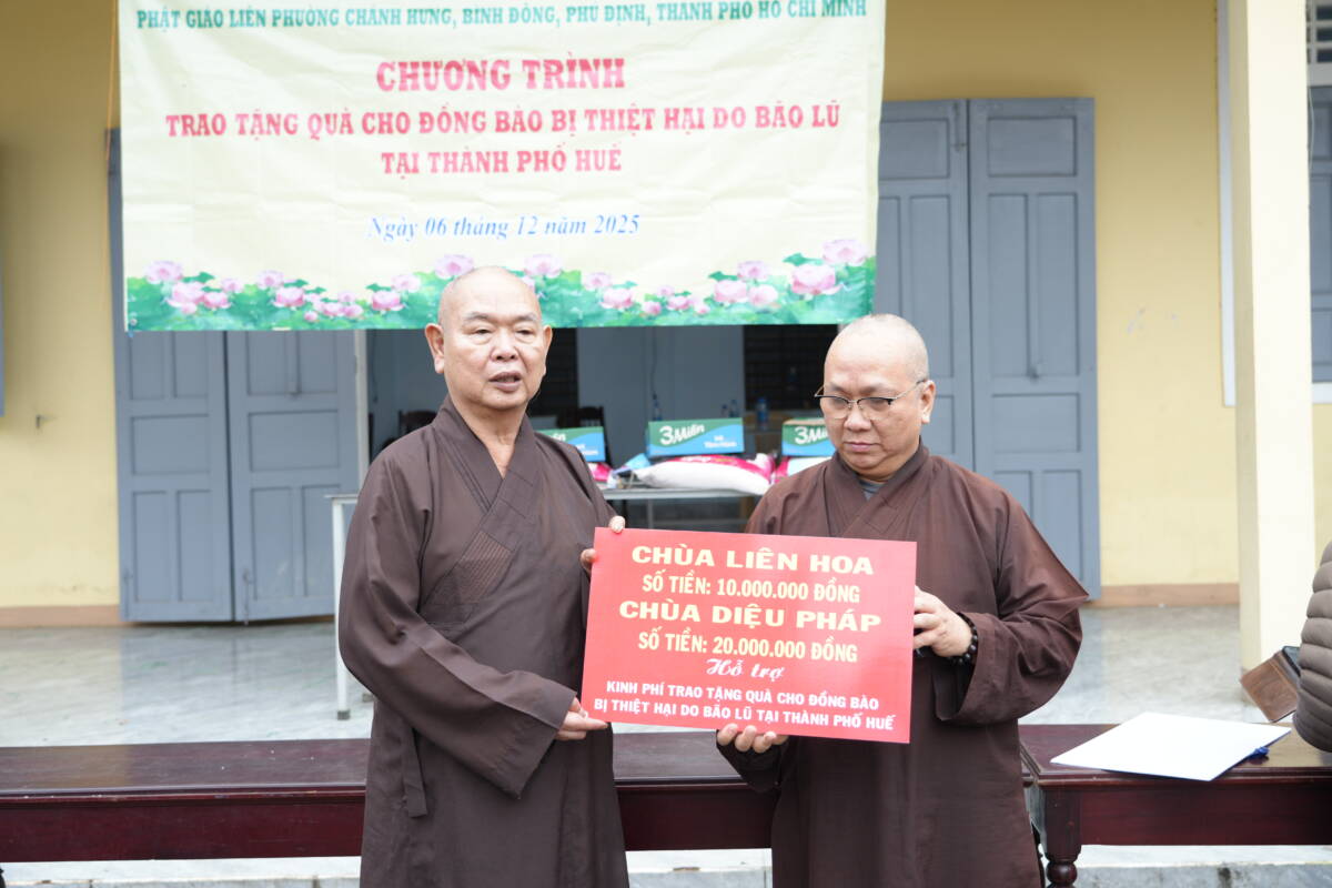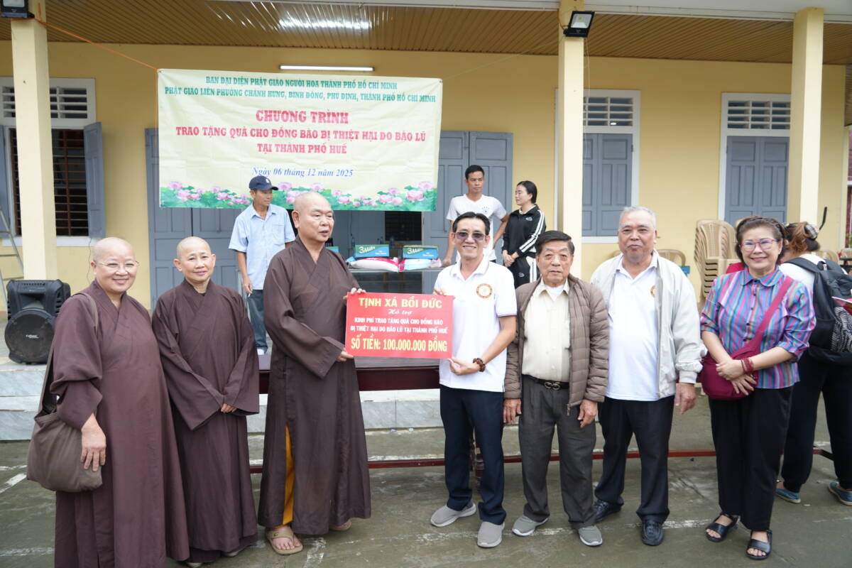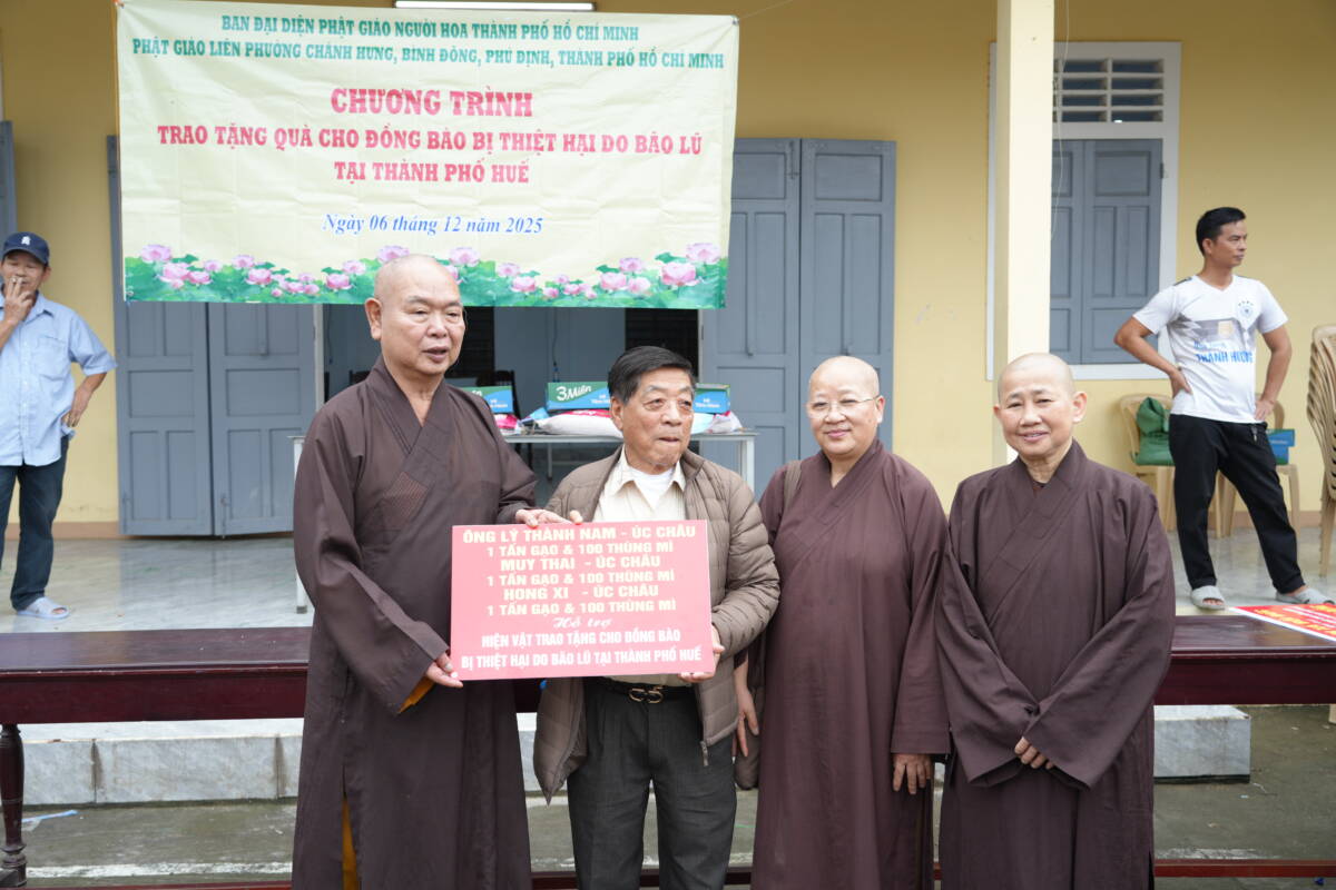 PGĐS – Ngày 6/12/2025, Đoàn Ban đại diện Phật giáo người hoa Tp.HCM, các tự viện liên phường Chánh Hưng, Bình Đông, Phú Định và Phật giáo Vĩnh Long đã đến thành phố Huế phát 1500 suất quà cho người dân có hoàn khó khăn bị ảnh hưởng bão lũ vừa qua.