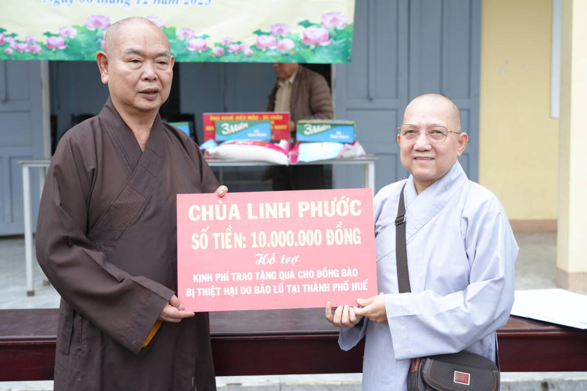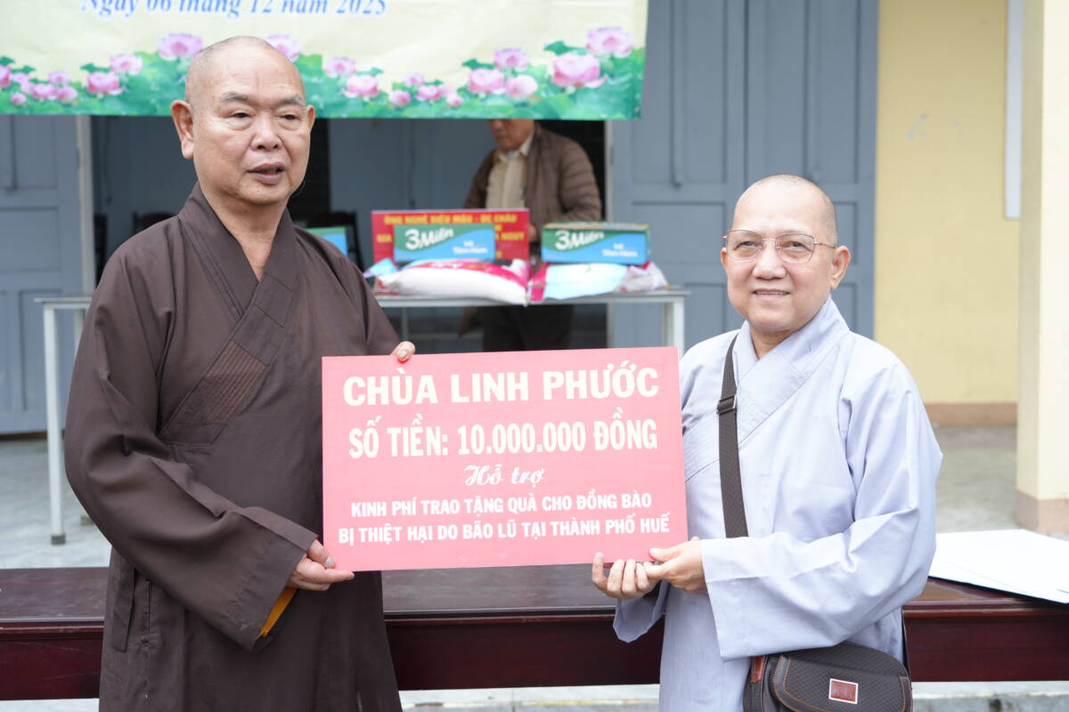 Được biết ngày 7/12, Đại diện Đoàn HT.Thích Chơn Tịnh, trụ trì chùa Thường Quang phường Phú Định tiếp tục trao tặng quà và 2 căn nhà tình thương tại Quảng Trị. Trong hai ngày 6 và 7/12, Tổng trị giá trao quà tại TP.Huế và Quảng Trị là hơn 2 Tỷ đồng, đây không chỉ thể hiện tấm lòng từ bi của người con Phật mà còn góp phần lan tỏa tinh thần “lá lành đùm lá rách”, khơi dậy các giá trị nhân văn và đạo lý truyền thống trong cộng đồng.