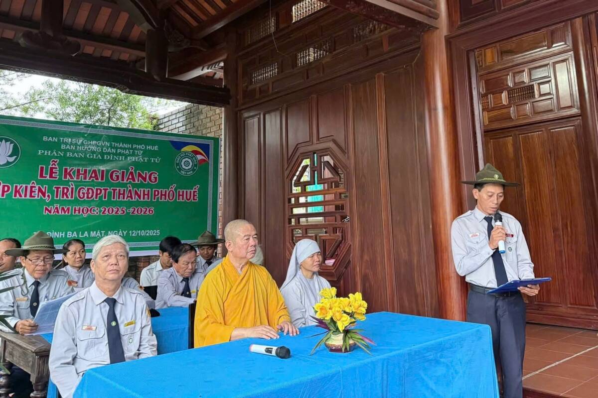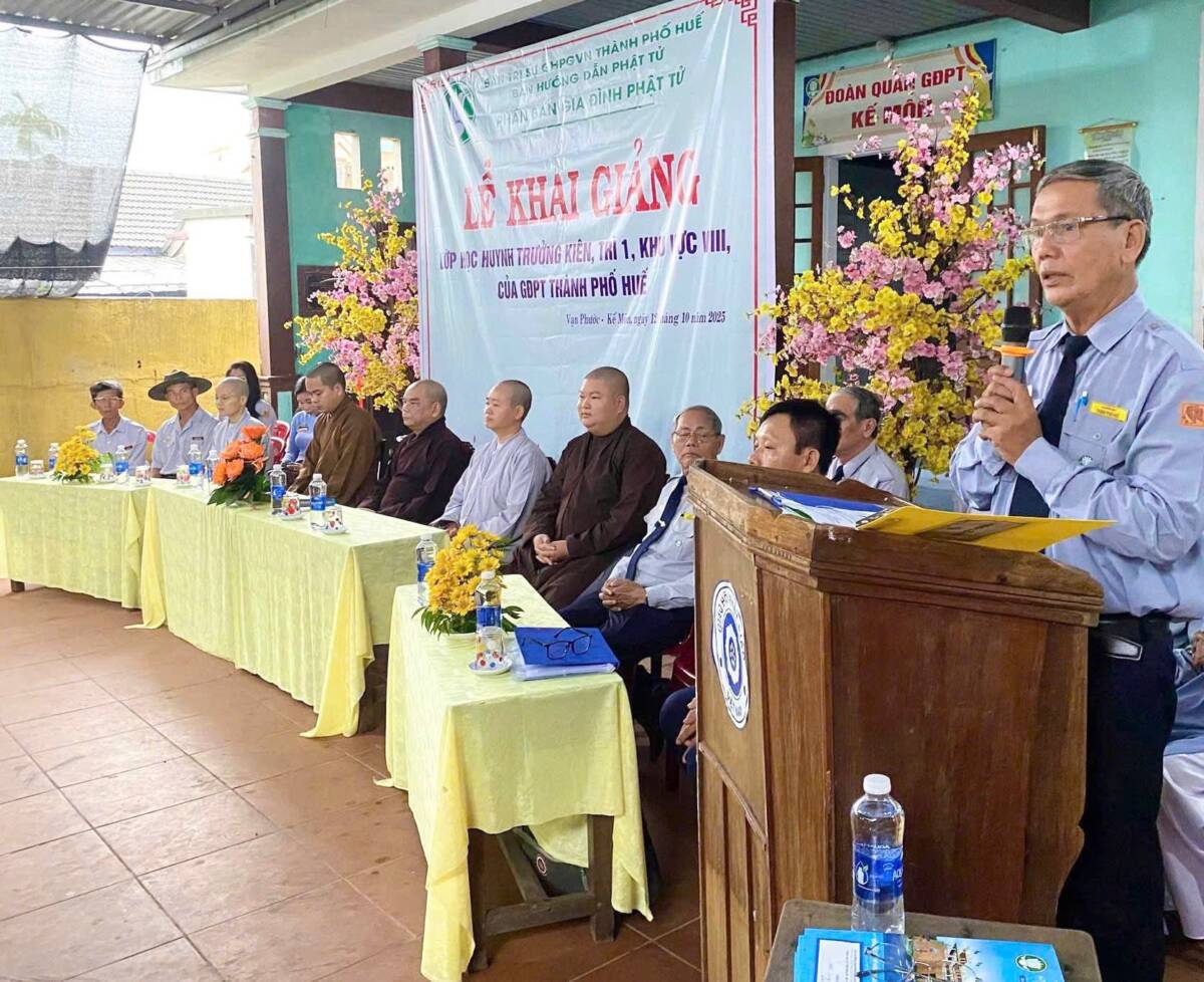 Thực hiện theo thông báo của Ban Hướng dẫn Phân ban Gia đình Phật tử (BHD PB GĐPT) thành phố Huế về việc tổ chức Lễ Khai giảng các lớp tu học dành cho Huynh trưởng trên toàn địa bàn thành phố.