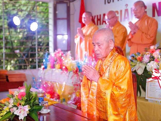 Phát biểu khai mạc buổi lễ, Hoà thượng Hiệu trưởng Thích Đức Thanh nhấn mạnh đến giáo dục đào tạo Tăng Ni trẻ có đạo hạnh, có năng lực, trình độ vững vàng trong quan điểm, thâm hiểu giáo pháp của đức Phật, có kiến thức và chuyên môn cao trong nội điển Phật học cũng như ngoại điển để củng cố, duy trì và phát triển Giáo hội, nhất là trong thời đại mới – thời đại khoa học công nghệ 4.0,. Đồng thời, Hoà thượng cũng có những lời huấn từ chia sẻ đến toàn thể Tăng Ni đã tốt nghiệp và đang bước vào năm học mới là hãy luôn nổ lực và rèn luyện trong sự nghiệp học tập và tu đạo để làm rỡ dòng giống Thiệu Long để phụng sự dân tộc và đạo pháp.