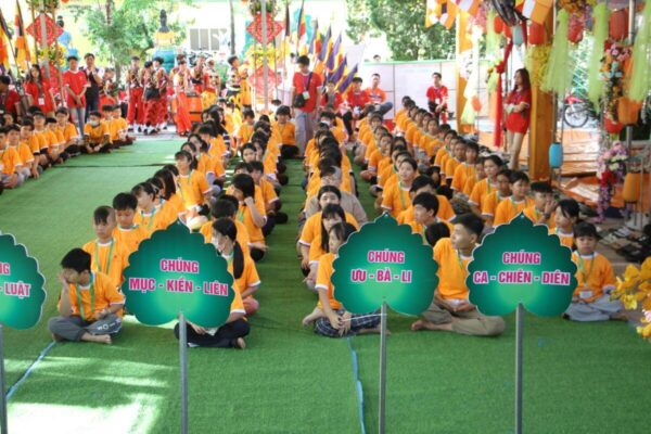 Sau khi thực hiện xong các thủ tục nhập khoá, phát đồng phục và sắp xếp chỗ nghỉ ngơi, khoá sinh đã được phổ biến sinh hoạt trong suốt thời gian diễn ra khoá tu và chia thành 10 gia đình, mang tên Thập đại đệ tử Đức Phật. Ban Tổ chức đã mời Bác sĩ CK1 Phạm Kim Thành – Chuyên khoa Răng Hàm Mặt, Chủ tịch kiêm Tổng Giám đốc Cty TNHH MTV Nha khoa Phương Thành, Chi hội Trưởng chi Hội Doanh nhân trẻ TP. Sa Đéc chia sẻ với các em về đề tài “Gia đình – Sức khỏe răng hàm mặt”.