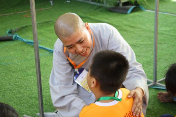 Thượng toạ Thích Chơn Trí, Trưởng Ban tổ chức đã chào đón và thăm hỏi các bạn khoá sinh cũng như các bạn tình nguyện viên, khảo sát nơi tập trung sinh hoạt tại sân chùa Phước Hưng, động viên Phật tử phục vụ như y tế, trà nước…