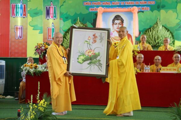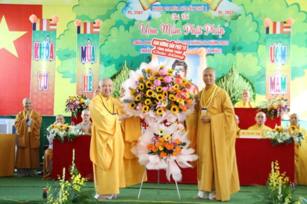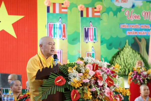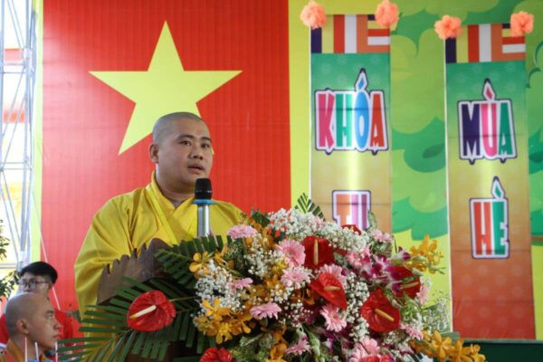Đạo từ đến các khóa sinh, ĐĐ. Thích Minh Phước – Trưởng Ban Hướng dẫn Phật tử tỉnh tán thán công đức Ban Tổ chức khóa tu đã tạo một môi trường tốt, một sân chơi lành mạnh đầy ắp vui vẻ nhưng rất ý nghĩa nhân dịp hè về, vừa giúp các em khóa sinh được giải trí sau một năm học đầy căng thẳng với bài vở, vừa là cơ hội giúp cho các khóa sinh cân bằng lại tâm lí của mình qua các buổi thiền tập, ăn cơm chánh niệm… khiến các em khóa sinh cảm nhận được sự hạnh phúc và an lạc ở giây phút hiện tại.