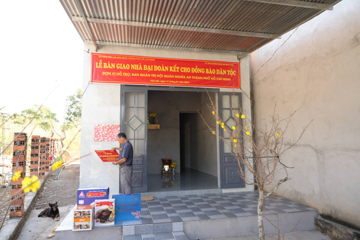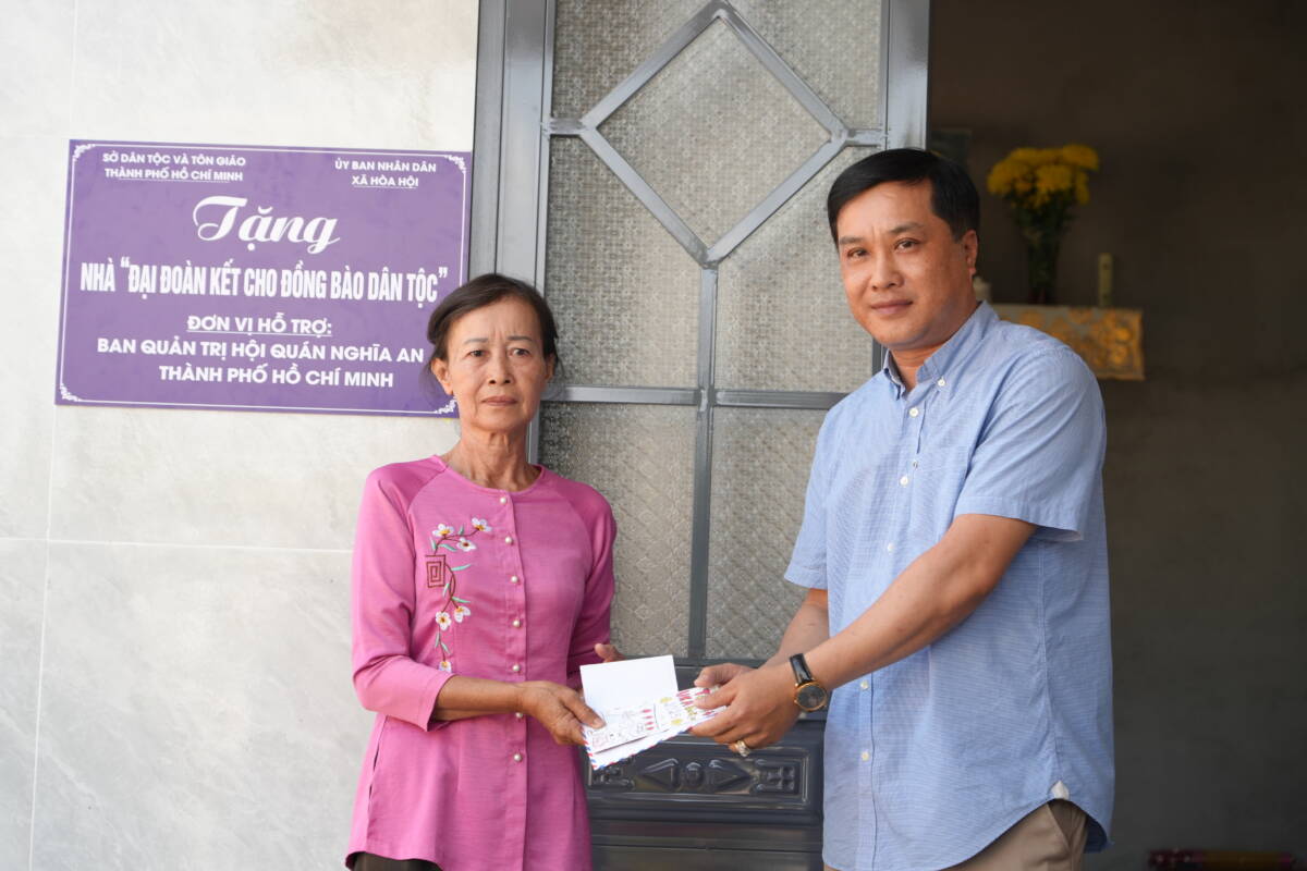 Được biết hai hộ gia đình Tòng Văn Nhân- ấp 5 và hộ gia đình ông Lê Ngọc Vinh – ấp 17, xã Hòa Hội xã Hoà Hội thuộc đồng bào dân tộc, có hoàn cảnh đặc biệt khó khăn trong cuộc sống, qua khảo sát của chính quyền địa phương, Được sự hỗ trợ Sở Tôn giáo – Dân tộc Thành phố cùng với sự đồng hành của Phật giáo người Hoa và Hội quán người Hoa đã hỗ trợ kinh phí xây nhà, sau gần 2 tháng thi công, nay công trình đã hoàn thành, với nguồn vốn đối ứng, căn nhà của hộ gia đình ông Nhân, gia đình ông Vinh đã hoàn thành đúng dịp đón Tết cổ truyền 2026. Căn nhà được xây dựng kiên cố, đảm bảo điều kiện sinh hoạt tốt hơn, với kinh phí hỗ trợ của Hoà thượng Thích Huệ Công, Đại diện Phật Giáo người Hoa hỗ trợ 60 triệu đồng; Ban Quản trị Hội quán Nghĩa An hỗ trợ 120 Triệu đồng, giúp hai gia đình có nơi ở ổn định, an toàn trước thềm xuân mới Bính Ngọ.