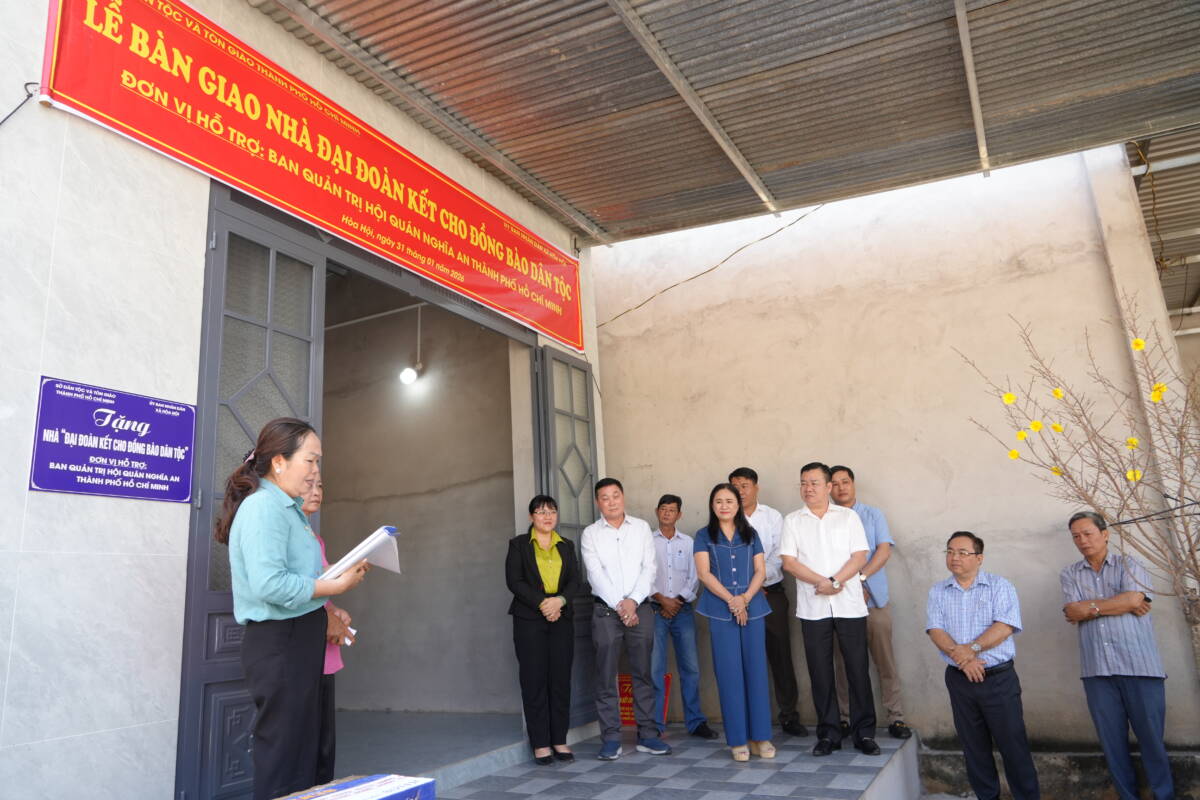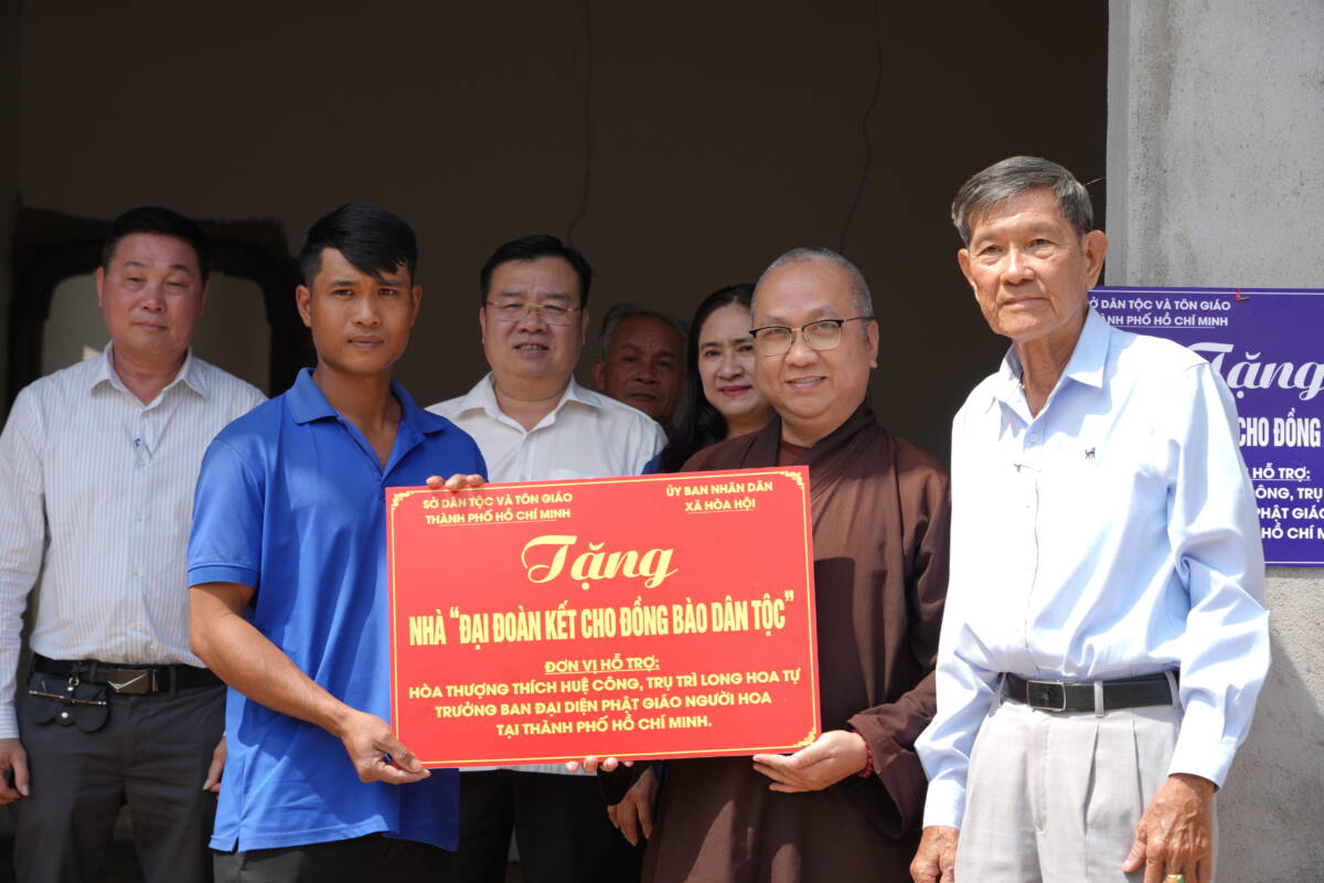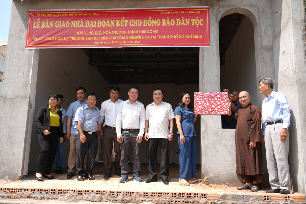 PGĐS – Sáng 31/1/2026, hưởng ứng phong trào “Cả nước chung tay xóa nhà tạm, nhà dột nát” và chung tay công tác “Vì đồng bào dân tộc”, Sở Tôn giáo – Dân tộc Thành phố, phối hợp với Ban Đại diện Phật giáo người Hoa, Ban Quản trị Hội quán Nghĩa An, và Ủy ban nhân dân xã Hoà Hội tổ chức khánh thành và bàn giao 2 căn nhà Đại đoàn kết cho các hộ dân tại ấp 5 và ấp 17, xã Hoà Hội, TPHCM.