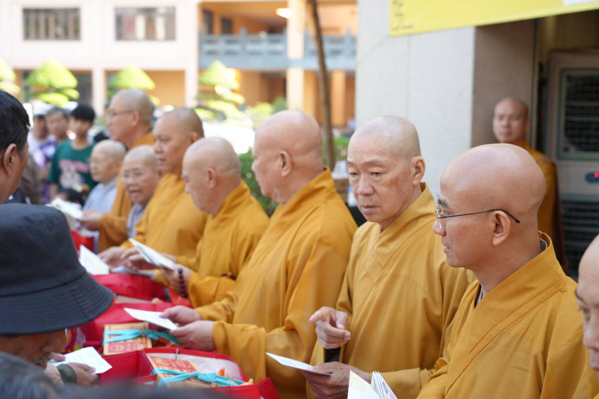 Chứng minh và tham dự buổi trao quà có: Hòa thượng Thích Lệ Trang, Phó Chủ tịch Hội đồng Trị sự, Trưởng ban Trị sự GHPGVN TP.HCM, Trưởng ban Tổ chức; cùng quý chư tôn đức Ban Thường trực BTS, chư tôn đức Tăng/Ni Ban Từ thiện xã hội GHPGVN TPHCM.