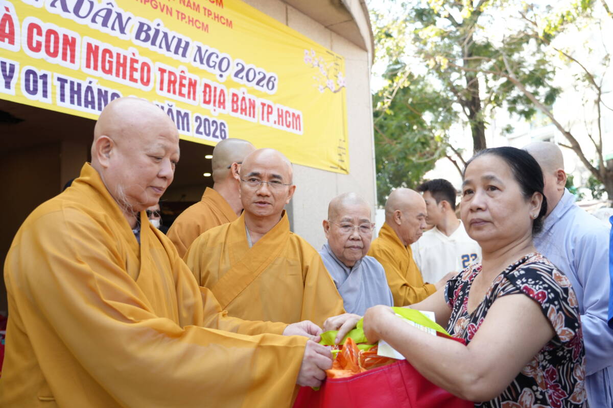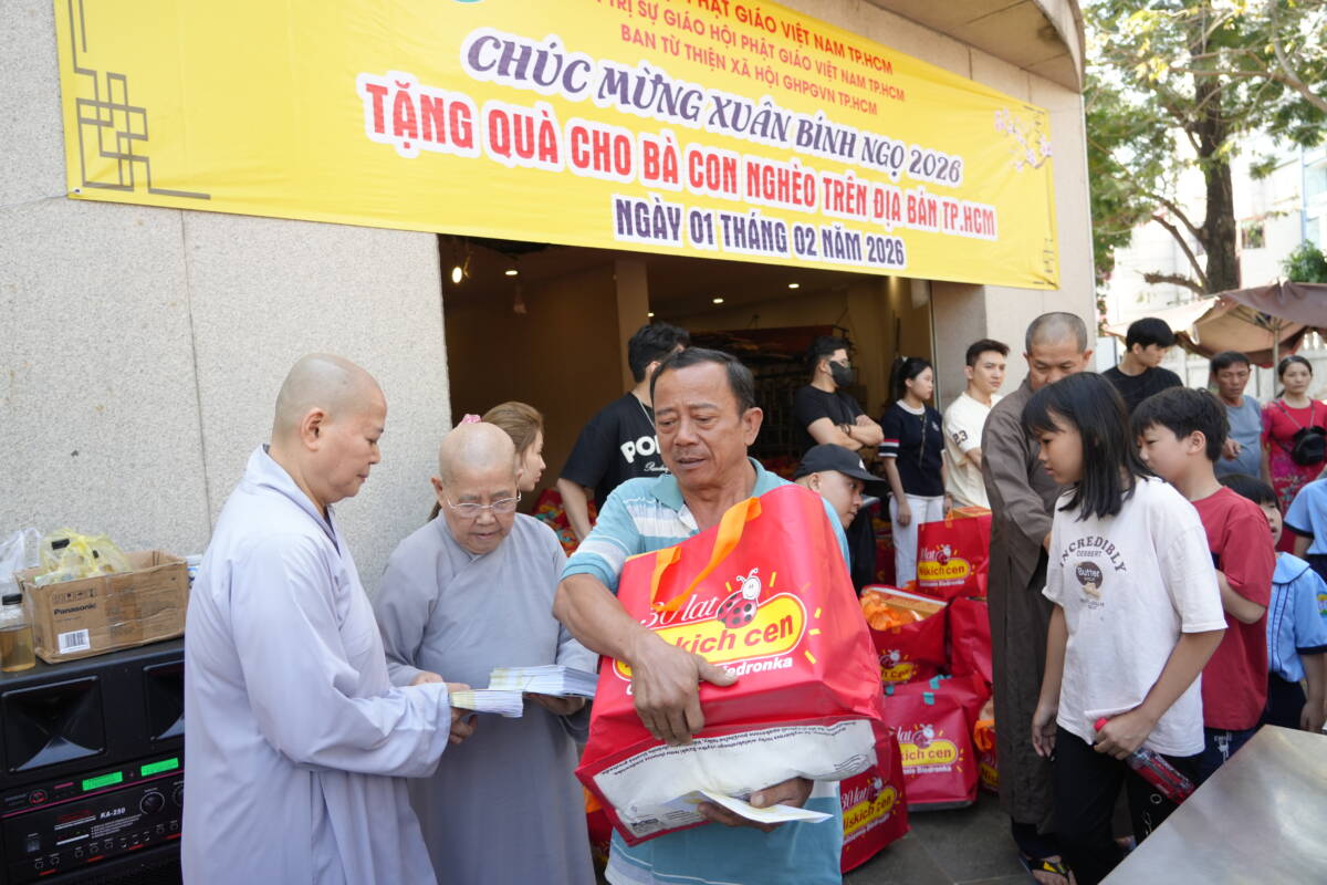 PGĐS – Sáng ngày 14 tháng chạp, tại Việt Nam Quốc Tự (P.Hoà Hưng), Ban Trị sự GHPGVN TP.HCM đã tổ chức trao 1.000 phần quà Tết đến người dân trên địa bàn thành phố trước thềm xuân Bính Ngọ – 2026.