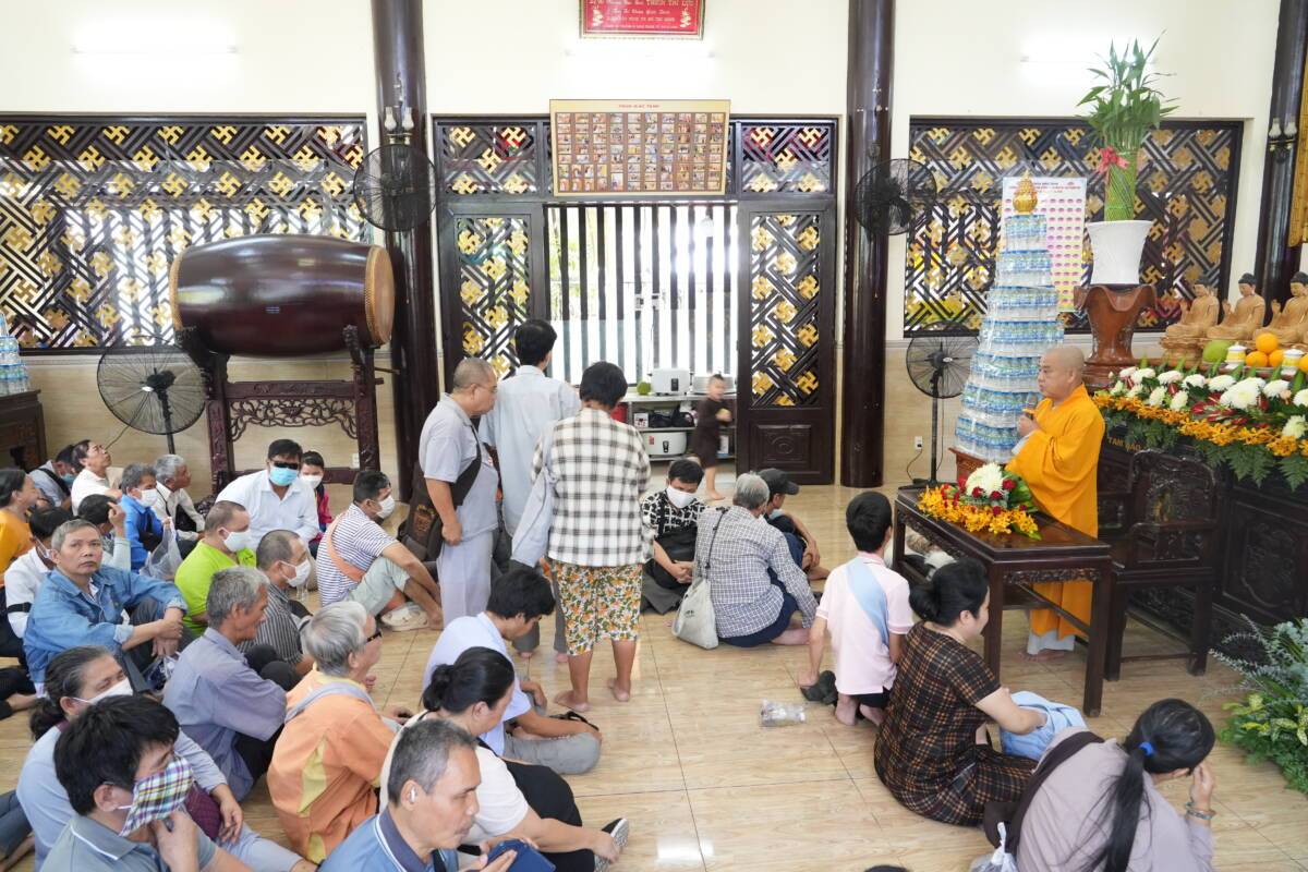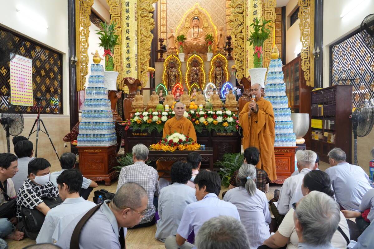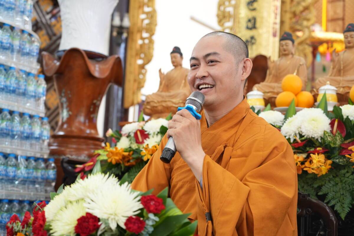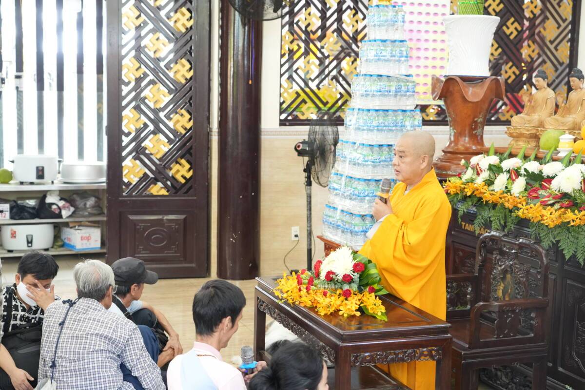 Khi chia sẻ, Đại đức nhắn nhủ hàng Phật tử, muốn được chuyển nghiệp, muốn vãng sinh Tây Phương thì phải biết đến chùa tu học, biết niệm Phật, làm từ thiện biết tu sửa những lỗi lầm của mình. Người Phật tử Niệm Phật là xưng đọc, nhớ nghĩ đến danh hiệu của Phật. Nói lời từ bi là nói những lời tâm phúc, tốt lành, thanh nhã, mang lại lợi ích cho mọi người, mọi loài, không thêu dệt, không nói dối, lật lọng, không chửi bới nguyền rủa, bởi từ là ban cho sự vui, bi là cứu cho khỏi khổ ải. Ngoài ra Niệm Phật tạo nên công đức vô biên, khi ta gieo hạt giống niệm Phật thì tâm ta dần chuyển hóa, tạo phước đức, vì vậy từng giây từng phút phải nhớ niệm Phật. Đừng cố mang theo sự hận thù, ganh ghét hơn thua trong cuộc sống. vì những điều đó sẽ khiến chúng ta tạo thêm nhiều nghiệp ác.