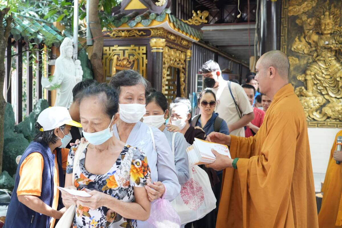Sau những lời pháp nhũ của Ban Giảng sư, đại chúng Đạo tràng khiếm thị đã đón nhận những phần quà của chư tôn đức và mạnh thường quân bao gồm gạo và tiền mặt.