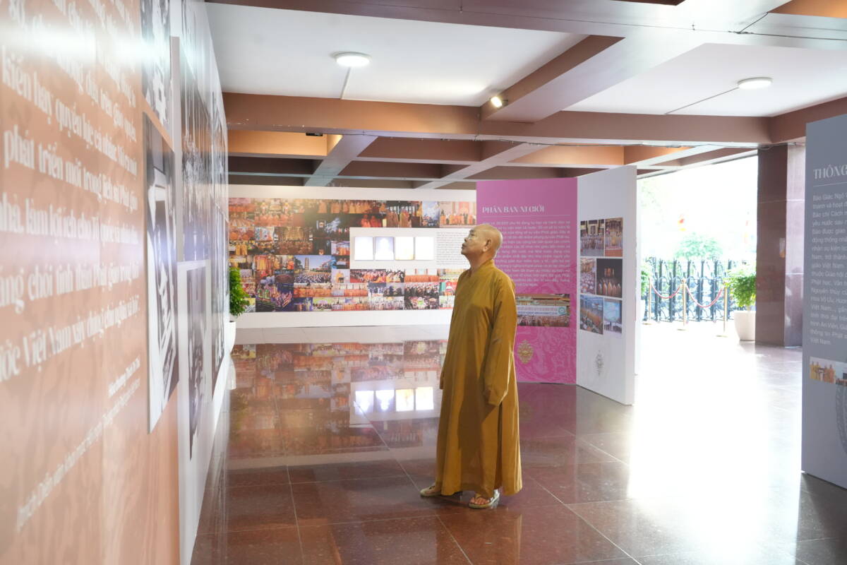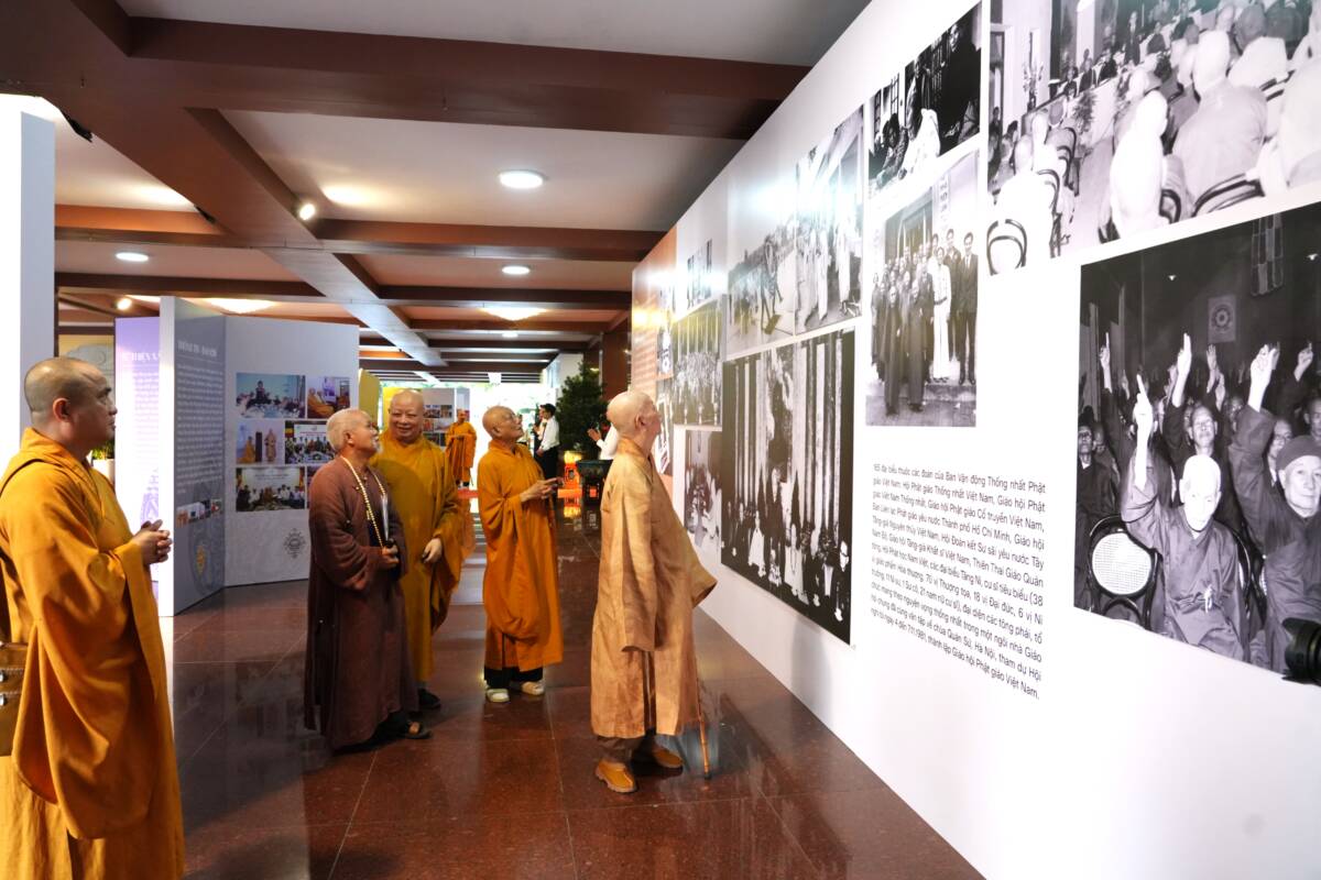Triển lãm được thể hiện qua 17 mảng đề tài: Bắt đầu bằng chân dung chư vị lãnh đạo tối cao của Giáo hội cũng như tư liệu quan trọng có giá trị đồng đại với sự kiện lịch sử: Hội nghị Thống nhất thành lập GHPGVN; Những cuộc gặp gỡ lịch sử giữa các bậc tôn túc với các vị lãnh đạo cấp cao của Đảng, Nhà nước; Dấu ấn 9 kỳ Đại hội; Thành tựu, cương lĩnh của các lĩnh vực quan trọng như Tăng sự, Hoằng pháp, Văn hóa, Hướng dẫn Phật tử, Nghi lễ, Giáo dục, Từ thiện xã hội, Đại tạng kinh VN, Ni giới…