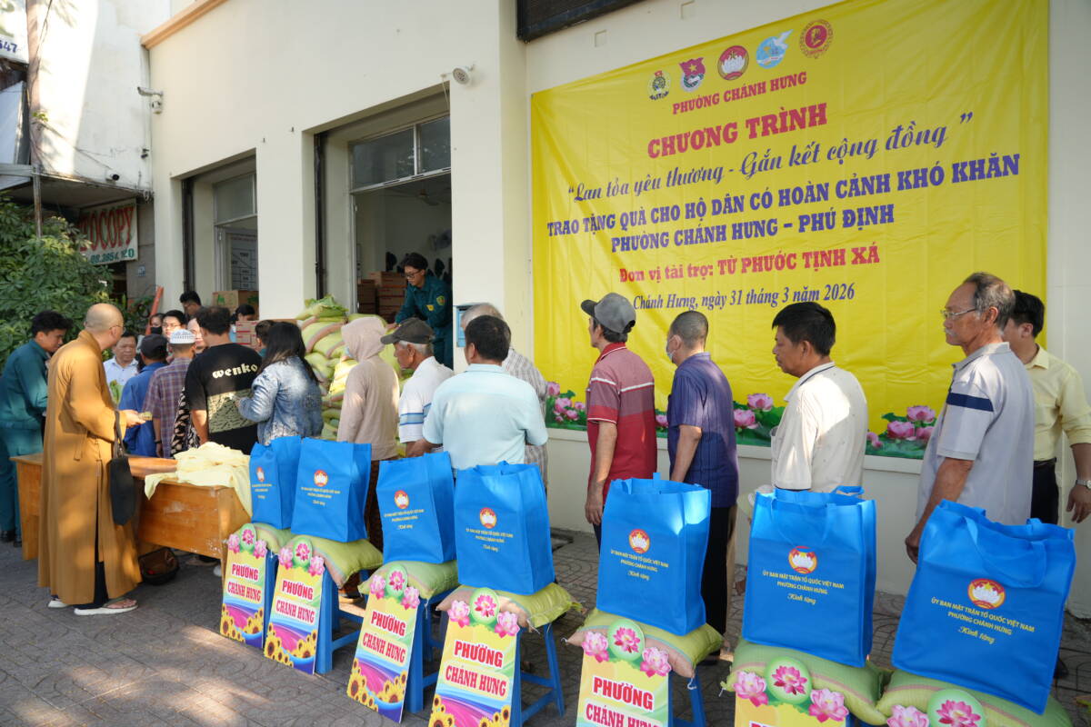 PGĐS – Nhằm chào mừng thành công cuộc bầu cử đại biểu Quốc hội và HĐND các cấp, cùng hướng tới Đại hội đại biểu Phật giáo TP.HCM lần thứ I, chiều nay, ngày 31/3/2024, tại trụ sở UBMTTQ phường Chánh Hưng, chư tôn đức Phật giáo người Hoa cùng chính quyền sở tại trao quà an sinh tới người dân có hoàn cảnh khó khăn trên địa bàn phường Chánh Hưng và phường Phú Định.