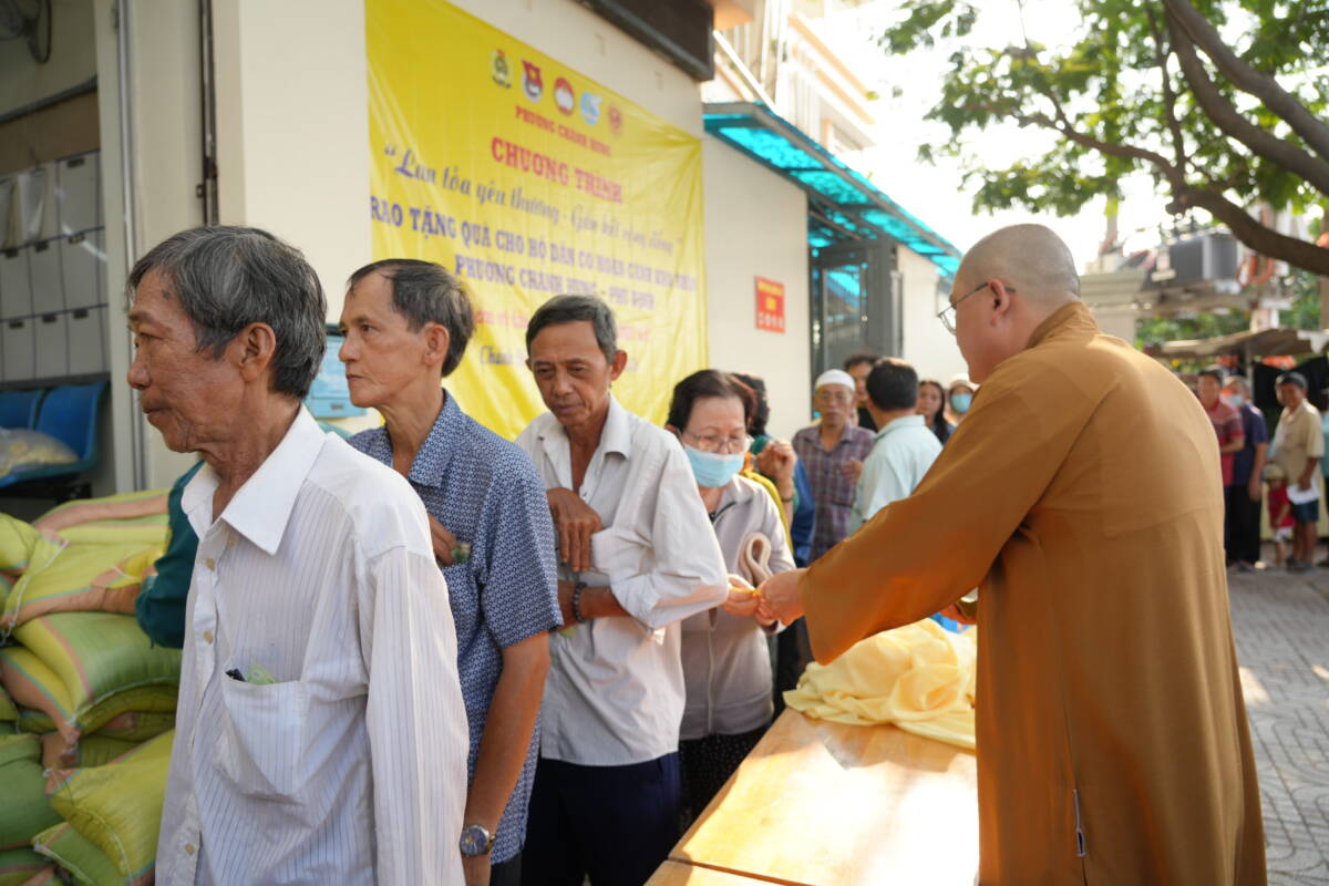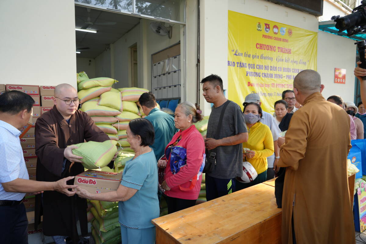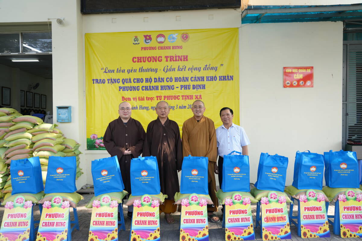 Phát biểu tại buổi trao quà ông Trương Công Hồ – UVBTV Đảng uỷ Chủ tịch UBMTTQVN phường Chánh Hưng bày tỏ lòng tri ân tới chư tôn đức Phật giáo người Hoa, đặc biệt tịnh xá Từ Phước đã luôn đồng hành cùng chính quyền sở tại nhằm quan tâm tới hoạt động An sinh Xã hội địa phương, chăm lo giúp đỡ cho người có hoàn cảnh khó khăn.