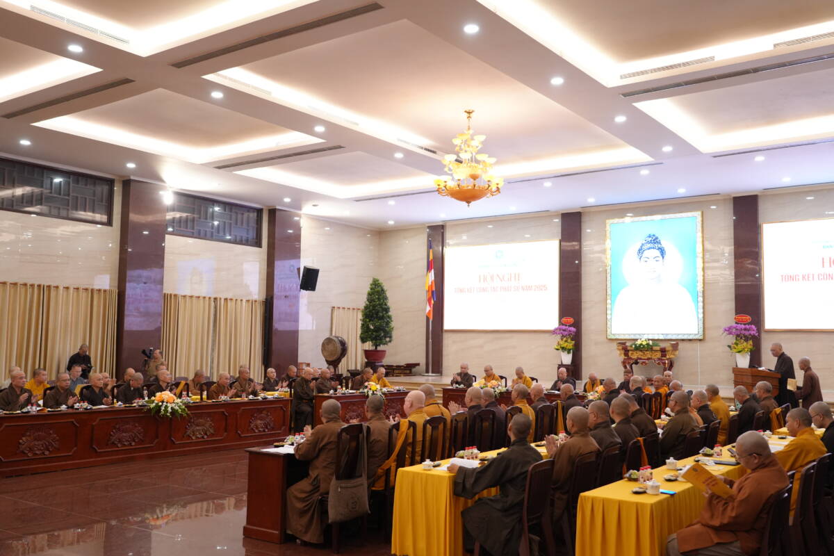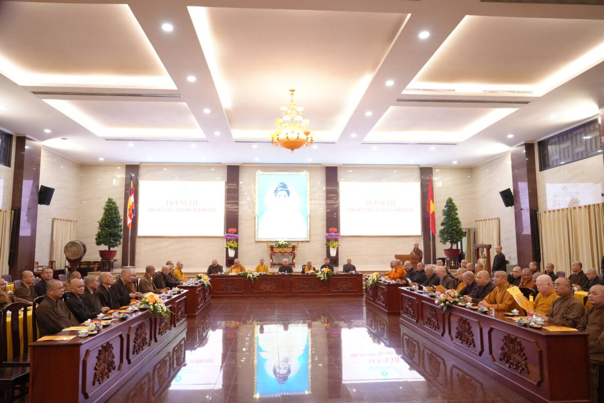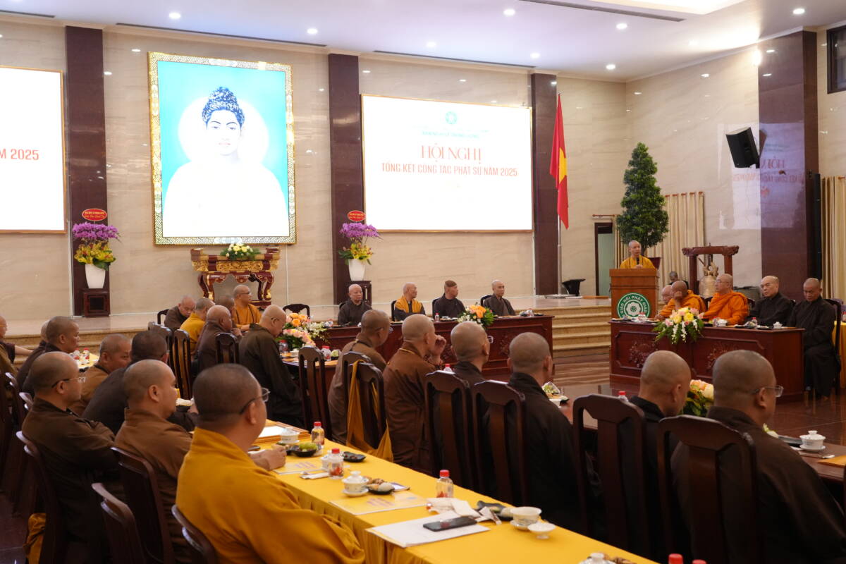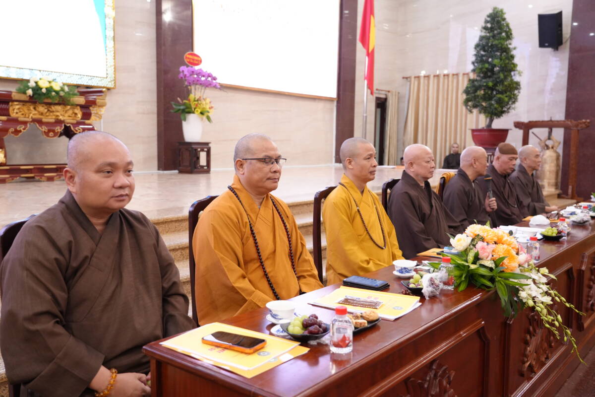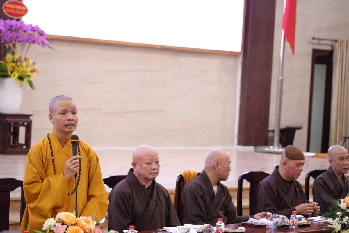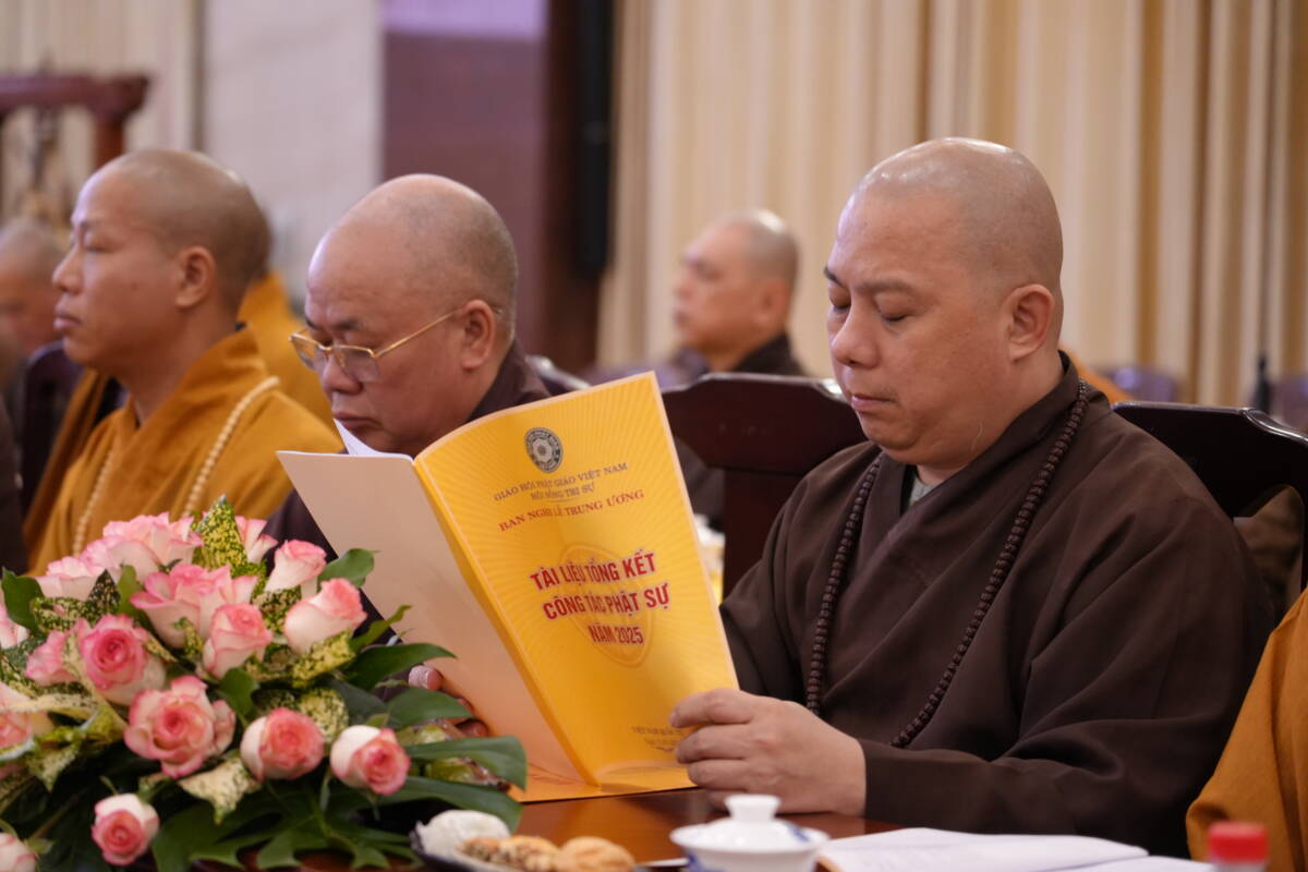 Tiếp đó, Thượng tọa Thích Thanh Lợi, Phó Trưởng ban kiêm Chánh Thư ký đã đọc Báo cáo tổng kết công tác Phật sự Ban Nghi lễ T.Ư gồm 3 chương, khái quát những hoạt động và thành quả mà ban Nghi lễ T.Ư đã thực hiện trong năm 2025, cũng là năm cuối của nhiệm kỳ IX, trong quá trình sáp nhập, tinh gọn các tỉnh, thành theo chủ trương chung của Nhà nước. Theo đó các hoạt động nghi lễ trong năm 2025 được triển khai đồng bộ, thống nhất, đạt hiệu quả cao. Ban Nghi lễ Trung ương đã hoàn thành xuất sắc nhiệm vụ được giao, đóng góp quan trọng vào thành công chung của Đại lễ Vesak. Sự chuyên nghiệp, trang nghiêm, chuẩn mực của Ban nghi lễ góp phần thể hiện bản sắc văn hóa Phật giáo Việt Nam với bạn bè quốc tế, đồng thời lan tỏa thông điệp từ bi – trí tuệ – hòa bình đến toàn thể nhân loại.
