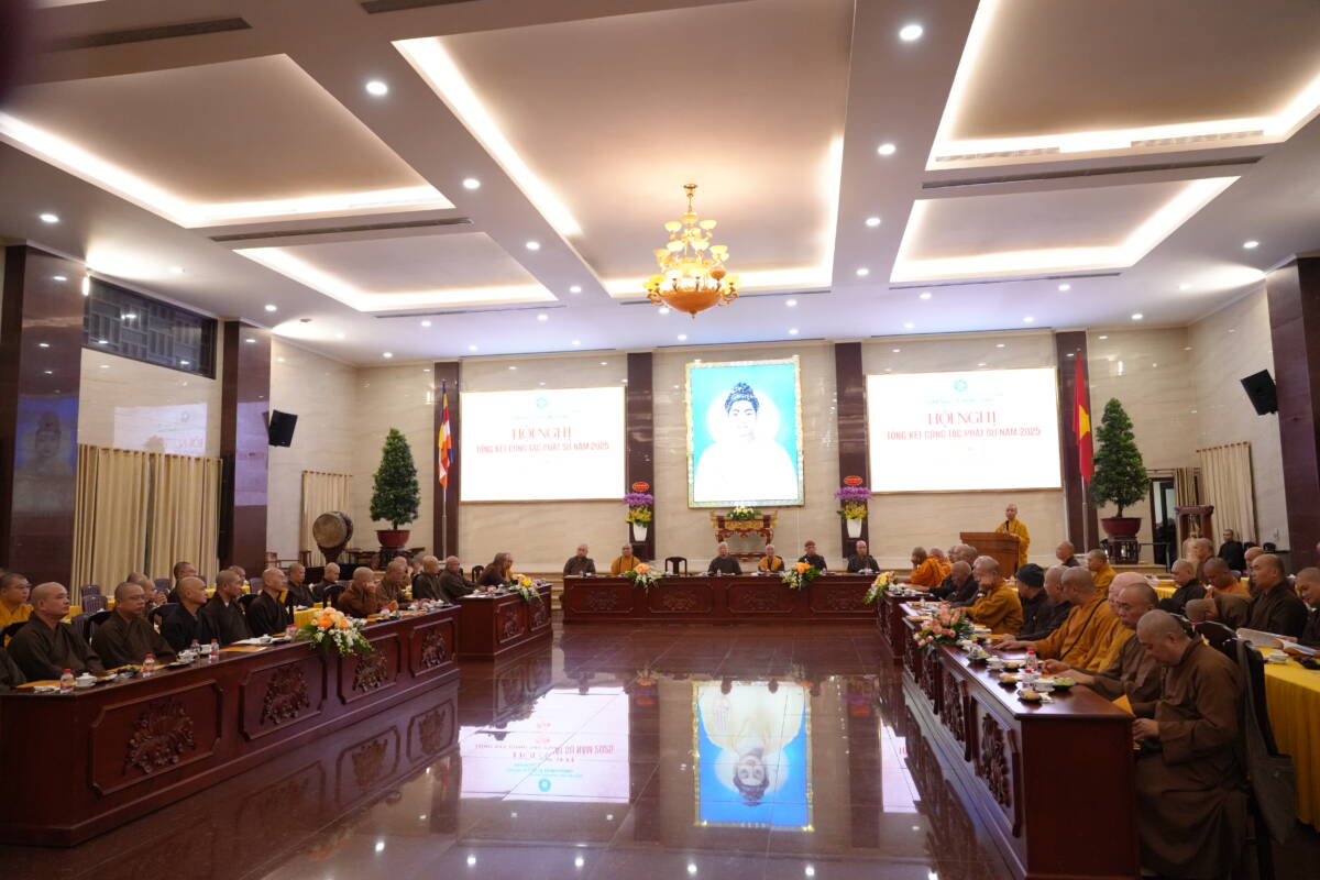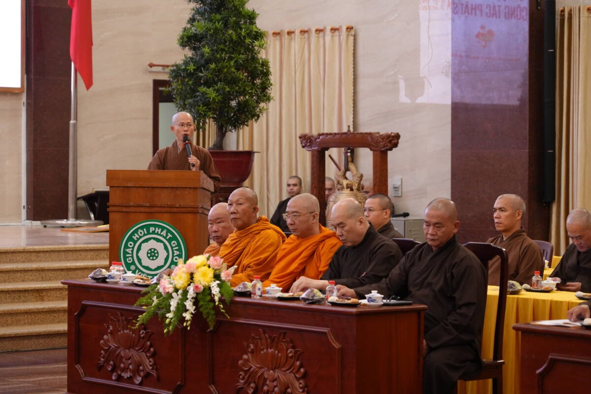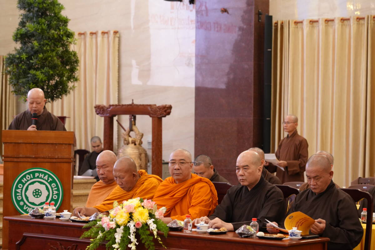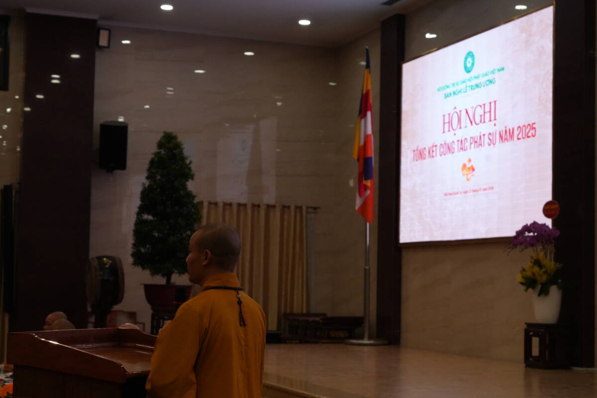 Tiếp đó, Thượng tọa Thích Thanh Lợi, Phó Trưởng ban kiêm Chánh Thư ký đã đọc Báo cáo tổng kết công tác Phật sự Ban Nghi lễ T.Ư gồm 3 chương, khái quát những hoạt động và thành quả mà ban Nghi lễ T.Ư đã thực hiện trong năm 2025, cũng là năm cuối của nhiệm kỳ IX, trong quá trình sáp nhập, tinh gọn các tỉnh, thành theo chủ trương chung của Nhà nước. Theo đó các hoạt động nghi lễ trong năm 2025 được triển khai đồng bộ, thống nhất, đạt hiệu quả cao. Ban Nghi lễ Trung ương đã hoàn thành xuất sắc nhiệm vụ được giao, đóng góp quan trọng vào thành công chung của Đại lễ Vesak. Sự chuyên nghiệp, trang nghiêm, chuẩn mực của Ban nghi lễ góp phần thể hiện bản sắc văn hóa Phật giáo Việt Nam với bạn bè quốc tế, đồng thời lan tỏa thông điệp từ bi – trí tuệ – hòa bình đến toàn thể nhân loại.