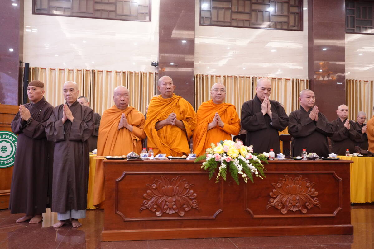 Sau lời cảm tạ của Thượng tọa Thích Minh Quang, thay mặt toàn thể Hội nghị dâng lời khánh tuế tới Nhị vị Hoà thượng Thích Lệ Trang; Hoà thượng Thích Giác Đạo, Với lòng tôn kính sâu sắc, Thượng tọa kính chúc nhị vị Hòa thượng pháp thể khinh an, đạo thọ miên trường, mãi là bậc tòng lâm thạch trụ dẫn dắt Ban Nghi lễ TƯ vững vàng trên con đường hoằng pháp và phát triển.