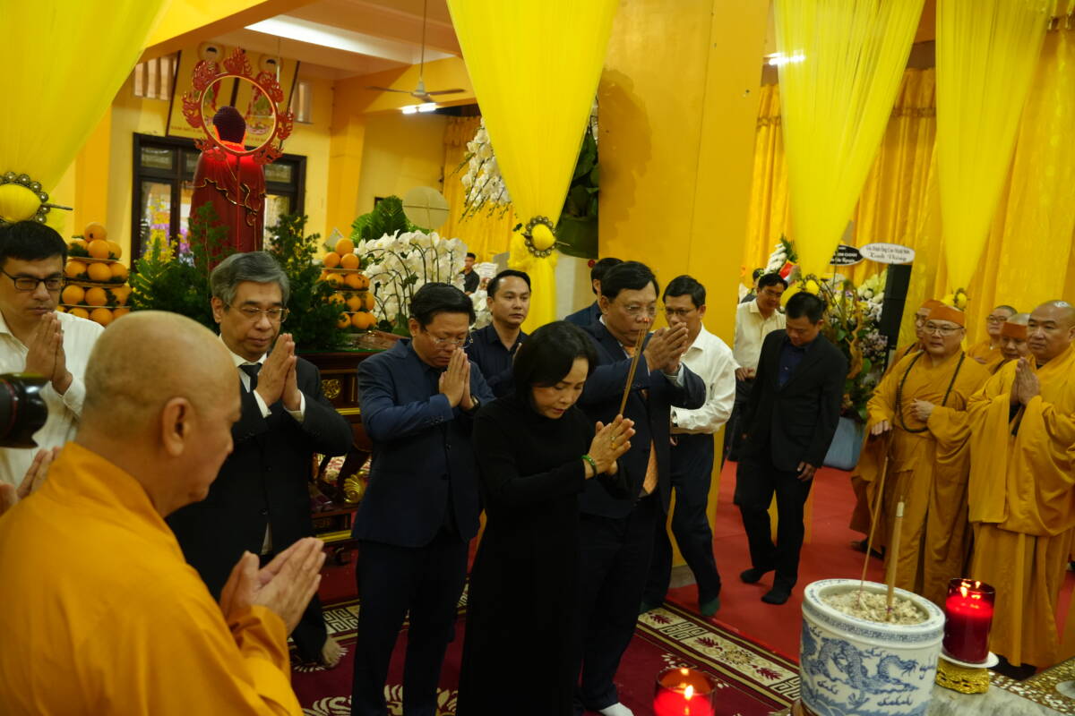 Dẫn đoàn là Phó Chủ tịch Quốc hội Nguyễn Thị Thanh làm trưởng đoàn lãnh đạo Đảng, Nhà nước, MTTQ Việt Nam viếng Trưởng lão Hòa thượng Thích Trí Tịnh; cùng đoàn có ông Nguyễn Phước Lộc, Phó bí thư Thành ủy, Chủ tịch Ủy ban MTTQ Việt Nam TP.HCM; ông Trần Thanh Lâm, Phó Trưởng ban Tuyên giáo và Dân vận Trung ương cùng Thứ trưởng Bộ Dân tộc và Tôn giáo Nguyễn Hải Trung.