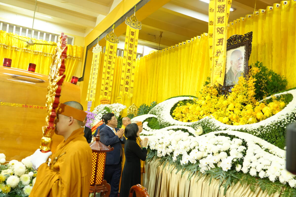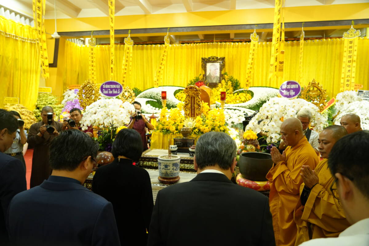 Dẫn đoàn là Phó Chủ tịch Quốc hội Nguyễn Thị Thanh làm trưởng đoàn lãnh đạo Đảng, Nhà nước, MTTQ Việt Nam viếng Trưởng lão Hòa thượng Thích Trí Tịnh; cùng đoàn có ông Nguyễn Phước Lộc, Phó bí thư Thành ủy, Chủ tịch Ủy ban MTTQ Việt Nam TP.HCM; ông Trần Thanh Lâm, Phó Trưởng ban Tuyên giáo và Dân vận Trung ương cùng Thứ trưởng Bộ Dân tộc và Tôn giáo Nguyễn Hải Trung.