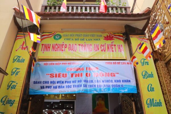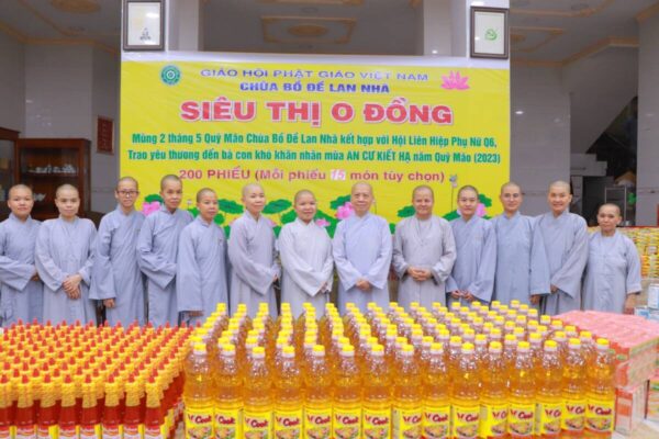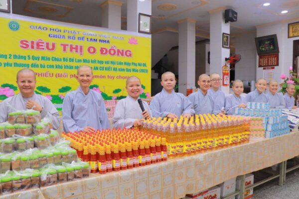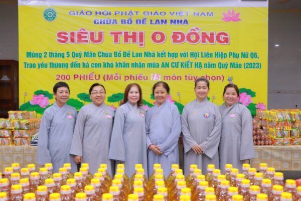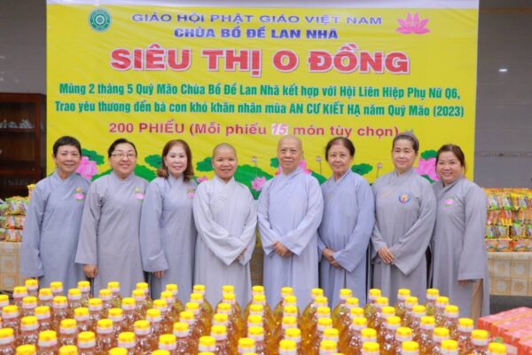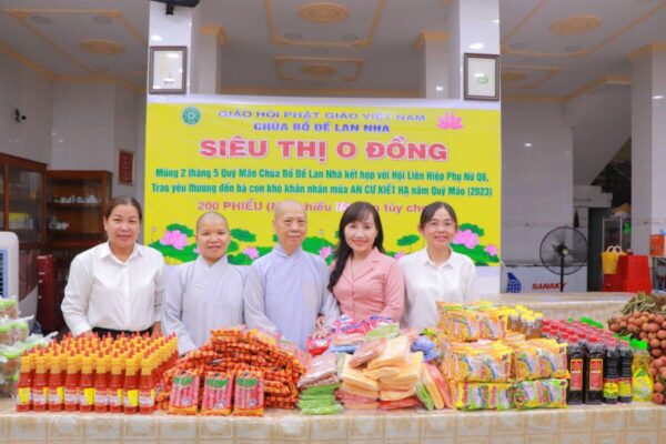 PGĐS – Với tinh thần “Thượng báo tứ trọng ân, hạ tế tam đồ khổ” và mong muốn quảng kết thiện duyên, trưa ngày 19/06/2023 (nhằm 2/5/Quý Mão), chư Tôn đức Ni tại trường Hạ chùa Bồ Đề Lan Nhã, số 247/8, đường Bình Tiên, phường 8, quận 6, TP. HCM kết hợp với Hội Phụ nữ Q.6 tổ chức siêu thị mini không đồng với tên gọi “SIÊU THỊ NGHĨA TÌNH” nhằm trợ giúp một phần quà cho bà con có hoàn cảnh khó khăn trên địa bàn quận 6.