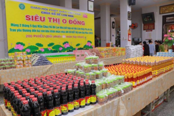 Mỗi phiếu được mua 15/22 món tùy chọn, mỗi món chỉ được một phần, không trùng lặp. Tại đây, nhà chùa đã phát 200 phiếu. Mỗi phiếu mua hàng giá trị 500 đồng. Tổng kinh phí cho buổi lễ là 100 triệu đồng. Trong buổi lễ, Ni sư cũng đã gởi lời tri ân đến mạnh thường quân đã hỗ trợ, đồng thời gởi lời tri ân đến chính quyền địa phương, nhất là Hội Phụ nữ quận đã ủng hộ, đồng hành cũng như tạo điều kiện để siêu thị mini 0 đồng được thành công. Bên cạnh đó, Ni sư còn gởi lời thăm hỏi và chúc sức khỏe đến bà con.