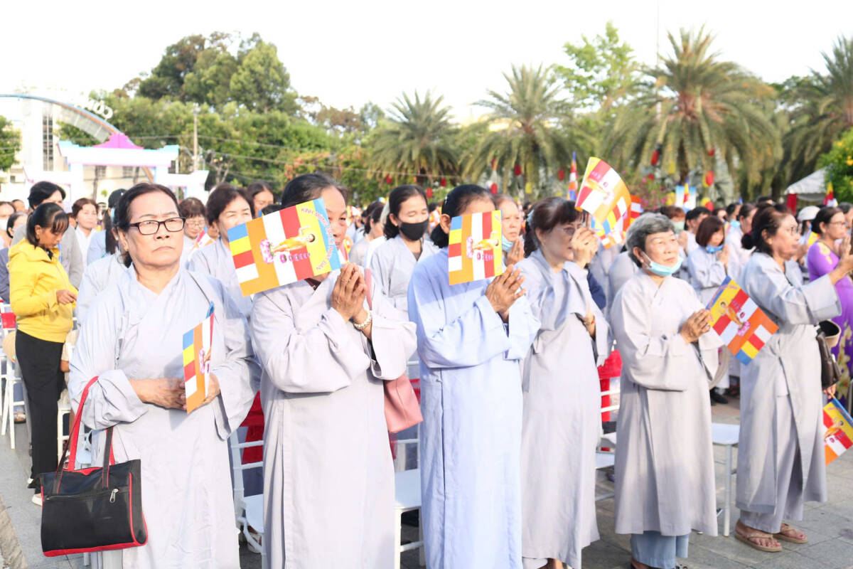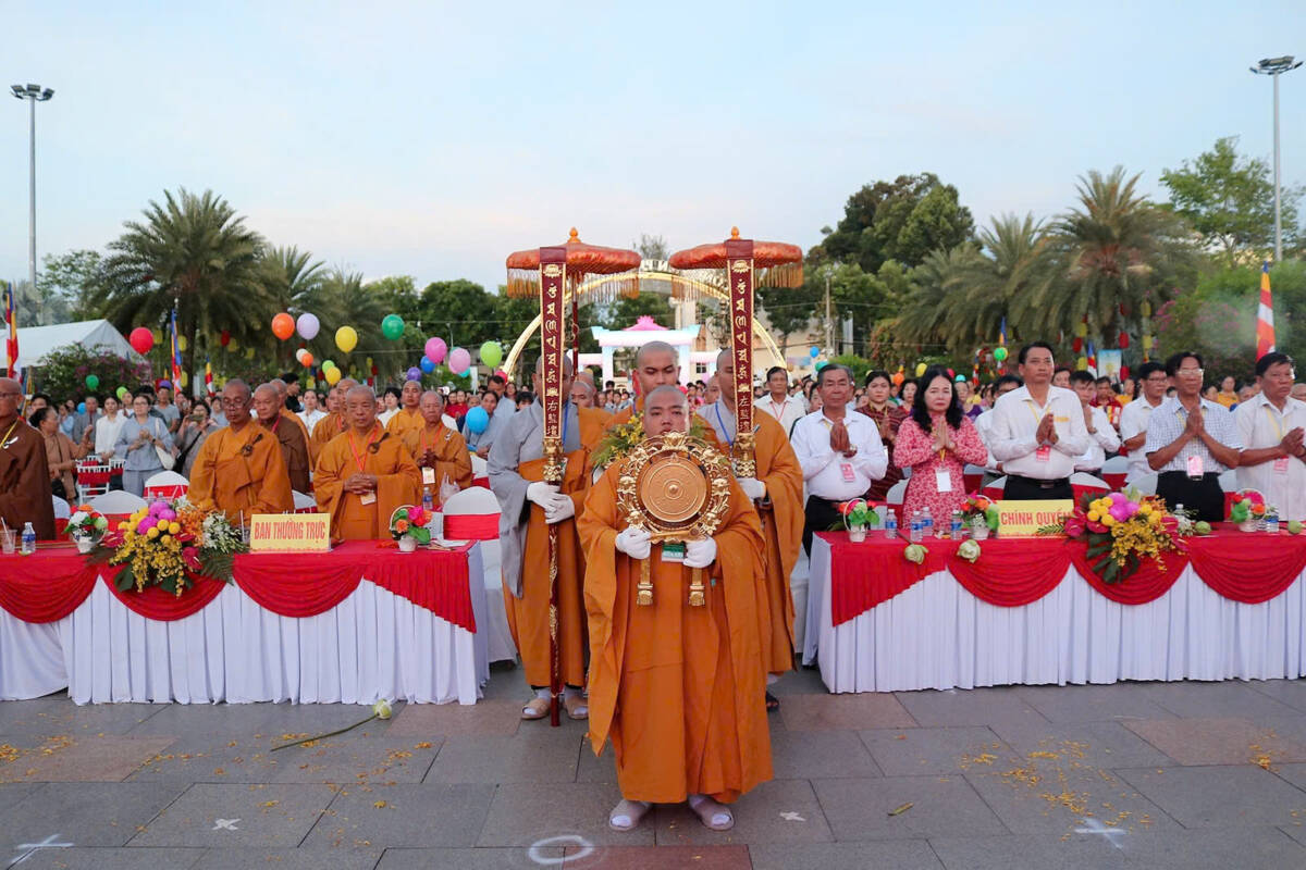 Tiếp đó, diễu hành xe hoa Phật đản dọc các tuyến đường chính và thả hoa đăng tại sông Long Bình hoàn mãn chương trình lễ trong niềm hỷ lạc của những người con Phật.