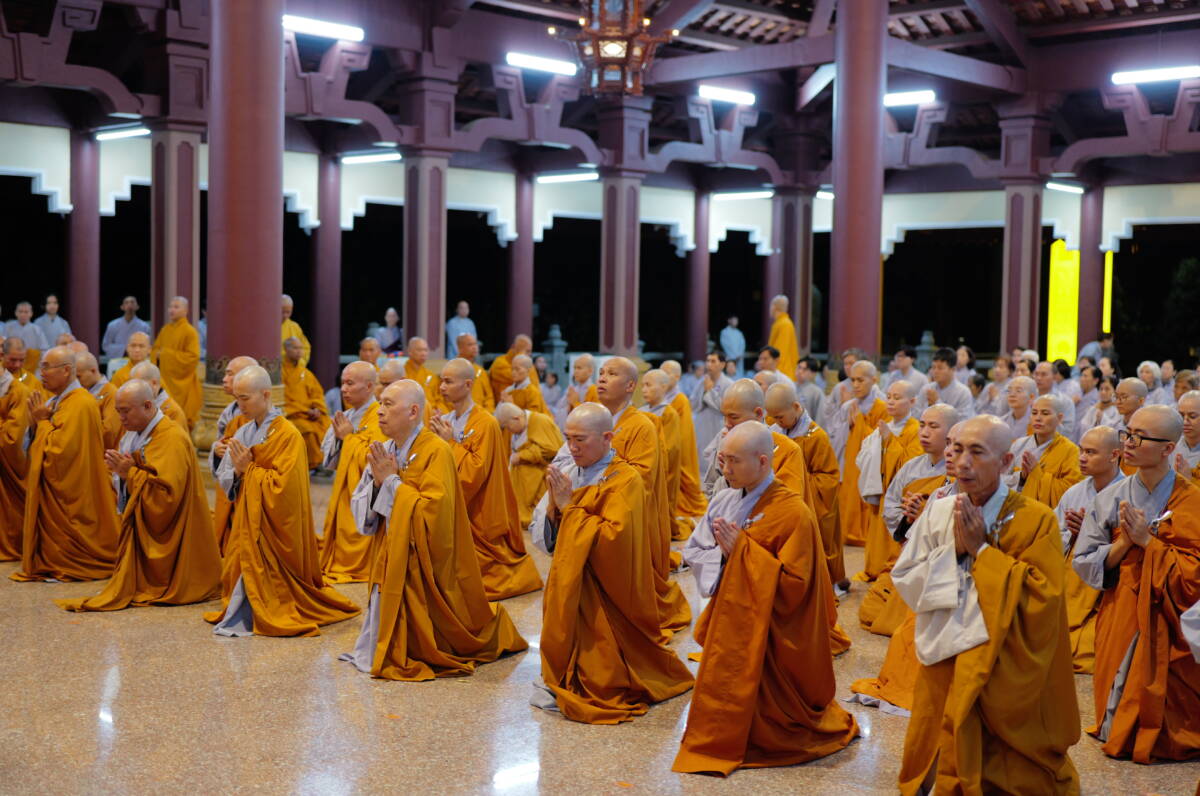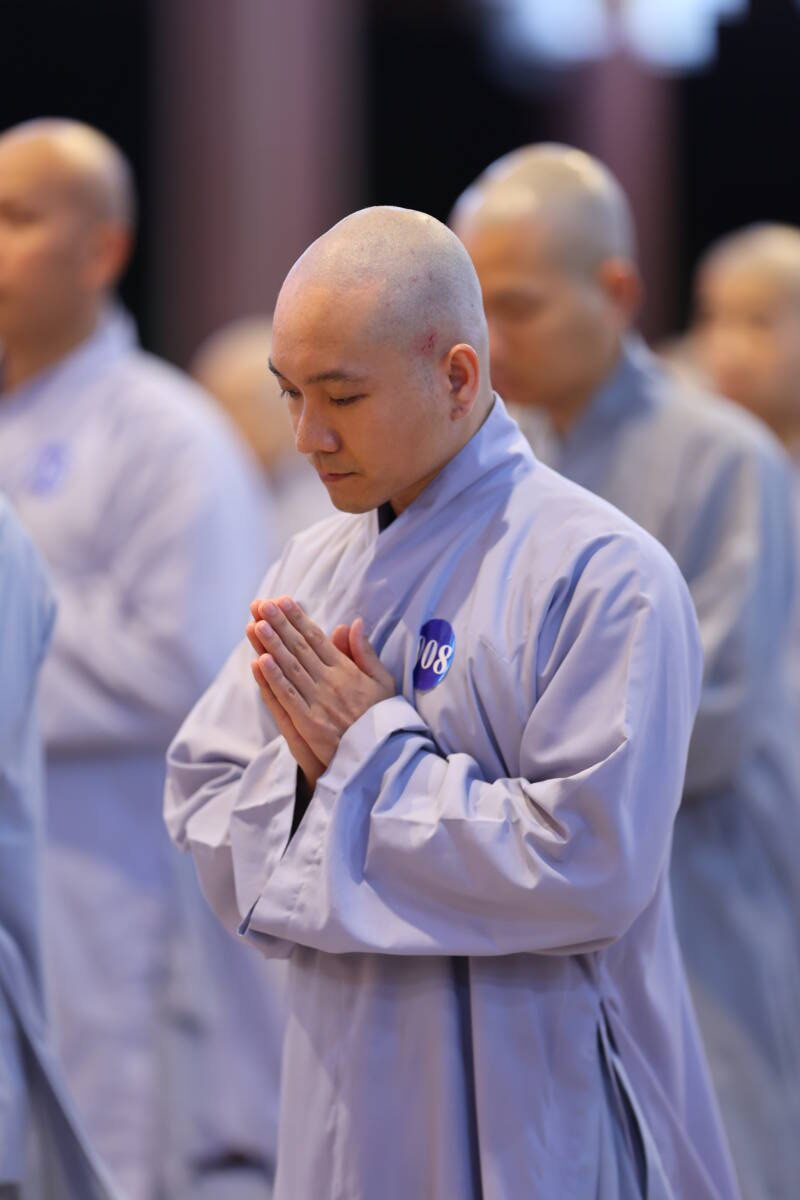 Tại chánh điện Tổ đình, trong không khí trang nghiêm thanh tịnh, chư Giới tử gồm 59 vị phát tâm xuất gia gieo duyên và 48 vị xuất gia chính thức đồng nhất tâm quy mạng mười phương ba đời chư Phật, tôn Pháp, hiền thánh Tăng thường trụ. Đồng thời hướng về Đức Trưởng lão Tông chủ Thiền phái Trúc Lâm, Hòa thượng Đường đầu cùng chư vị Tôn chứng sư hiện tiền, cung kính ngưỡng cầu giới pháp cao quý của Đức Thế Tôn.