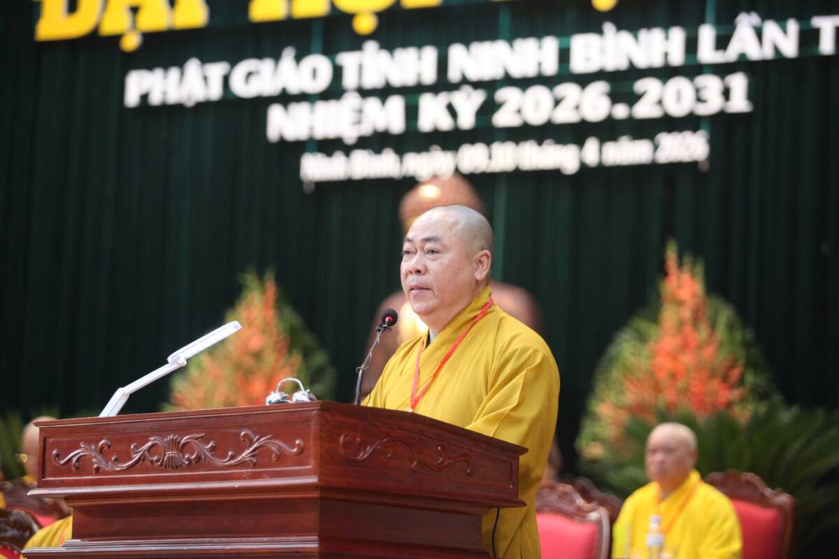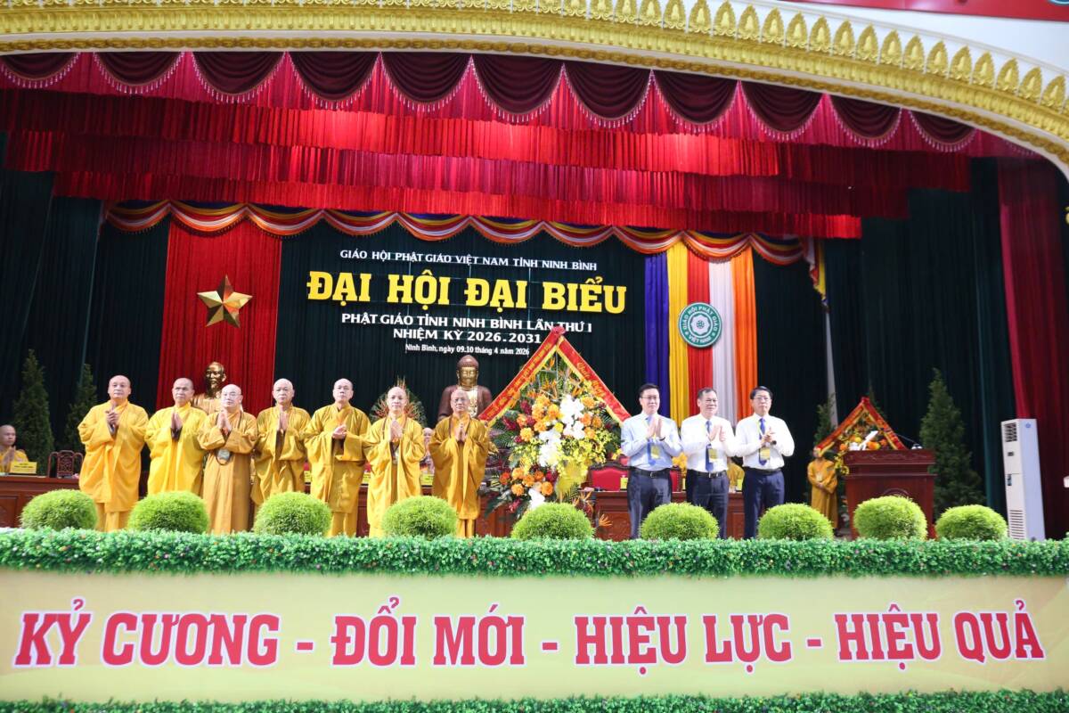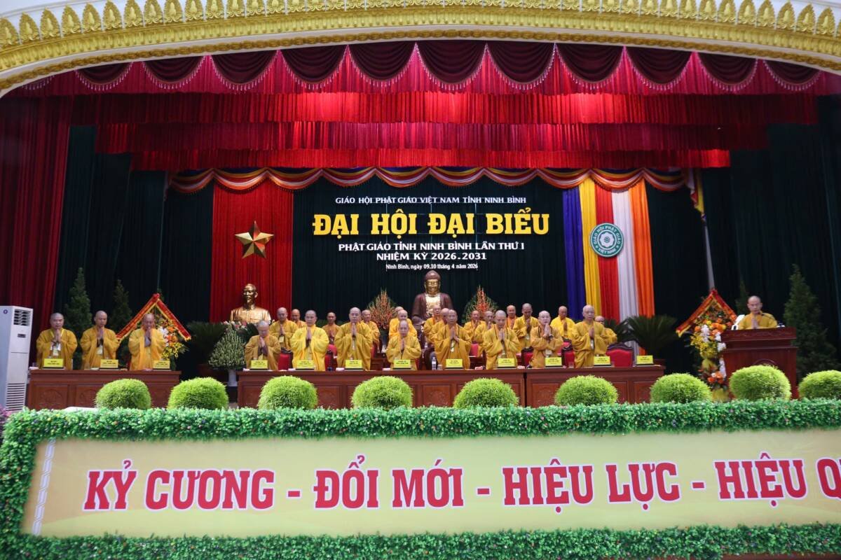 Sáng nay, ngày 10/4/2026, tại Trung tâm Phật giáo Trúc Lâm Thiên Trường (phường Nam Định), Đại hội Đại biểu Phật giáo tỉnh Ninh Bình lần thứ I, nhiệm kỳ 2026–2031 đã trang nghiêm diễn ra phiên chính thức với sự tham dự của Hoà thượng (HT) Thích Thanh Nhiễu, uỷ viên Thường trực HĐCM, Phó Chủ tịch Thường trực HĐTS, Phó trưởng ban Thường trực Ban Tăng sự TƯ GHPGVN; HT. Thích Gia Quang, HT. Thích Quảng Tùng, HT. Thích Thanh Điện, HT. Thích Thanh Quyết, Thượng toạ (TT) Thích Thanh Phong- đồng Phó Chủ tịch HĐTS GHPGVN; cùng chư Tôn đức Chung minh GHPGVN; HT Thích Quảng Hà, Phó Chủ tịch HĐTS, Trưởng Ban Trị sự GHPGVN tỉnh Ninh Bình; TT thích Thanh Tuấn, Phó tổng thư ký, Chánh VP TƯ GHPGVN, TT. Thích Minh Quang, Phó Thường trực BTS GHPGVN tỉnh Ninh Bình; cùng chư tôn đức Thường trực BTS, chư Tôn đức uỷ viên BTS; chư tôn đức Ban Trị sự TP.Hà Nội, Hải Phòng, tỉnh Thanh Hóa, Phú Thọ, Nghệ An, và Tăng Ni, cư sĩ đại biểu.