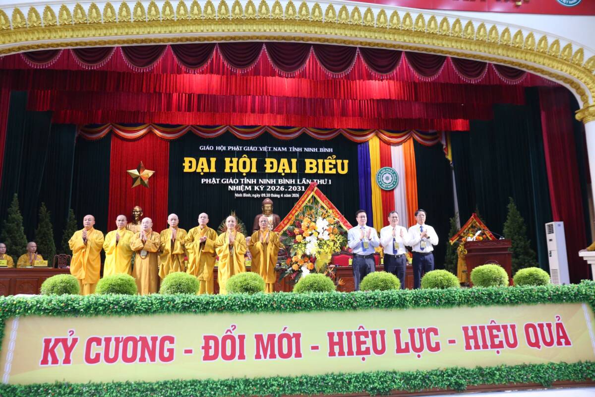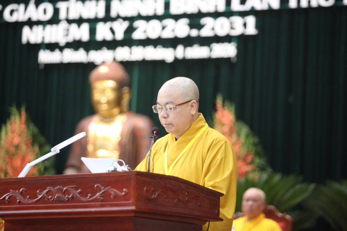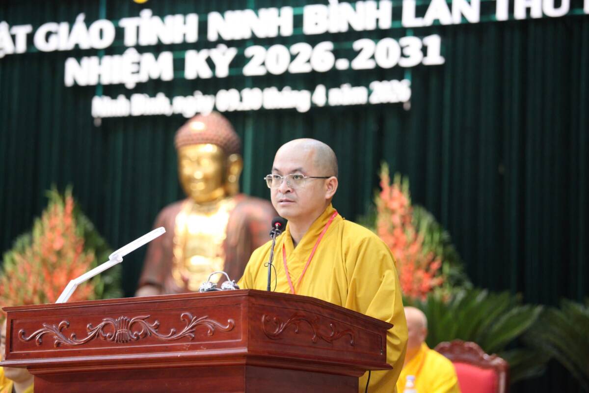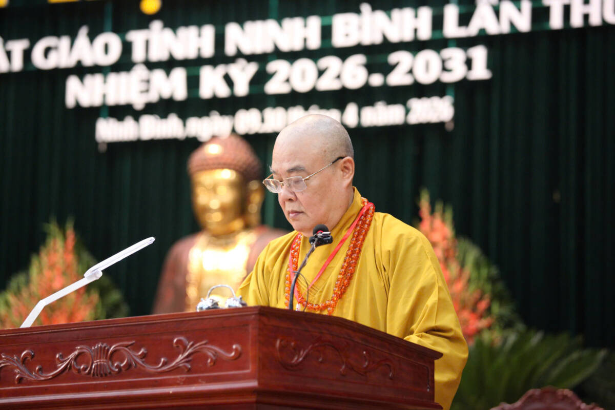 Sáng nay, ngày 10/4/2026, tại Trung tâm Phật giáo Trúc Lâm Thiên Trường (phường Nam Định), Đại hội Đại biểu Phật giáo tỉnh Ninh Bình lần thứ I, nhiệm kỳ 2026–2031 đã trang nghiêm diễn ra phiên chính thức với sự tham dự của Hoà thượng (HT) Thích Thanh Nhiễu, uỷ viên Thường trực HĐCM, Phó Chủ tịch Thường trực HĐTS, Phó trưởng ban Thường trực Ban Tăng sự TƯ GHPGVN; HT. Thích Gia Quang, HT. Thích Quảng Tùng, HT. Thích Thanh Điện, HT. Thích Thanh Quyết, Thượng toạ (TT) Thích Thanh Phong- đồng Phó Chủ tịch HĐTS GHPGVN; cùng chư Tôn đức Chung minh GHPGVN; HT Thích Quảng Hà, Phó Chủ tịch HĐTS, Trưởng Ban Trị sự GHPGVN tỉnh Ninh Bình; TT thích Thanh Tuấn, Phó tổng thư ký, Chánh VP TƯ GHPGVN, TT. Thích Minh Quang, Phó Thường trực BTS GHPGVN tỉnh Ninh Bình; cùng chư tôn đức Thường trực BTS, chư Tôn đức uỷ viên BTS; chư tôn đức Ban Trị sự TP.Hà Nội, Hải Phòng, tỉnh Thanh Hóa, Phú Thọ, Nghệ An, và Tăng Ni, cư sĩ đại biểu.