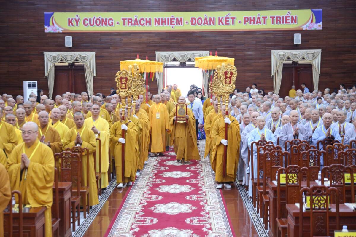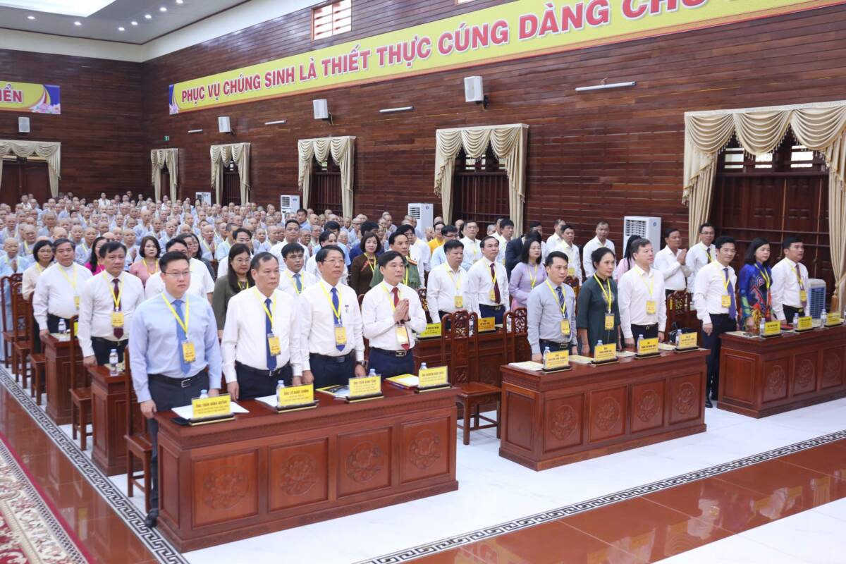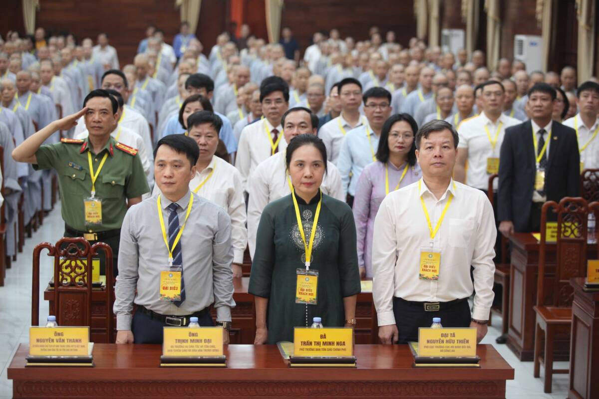 Mở đầu phiên chính thức, Đại hội cử hành nghi thức niệm Phật cầu gia bị, chào Quốc kỳ, Đạo kỳ trong không khí trang nghiêm, thể hiện tinh thần hòa hợp, gắn bó giữa Đạo pháp và Dân tộc.