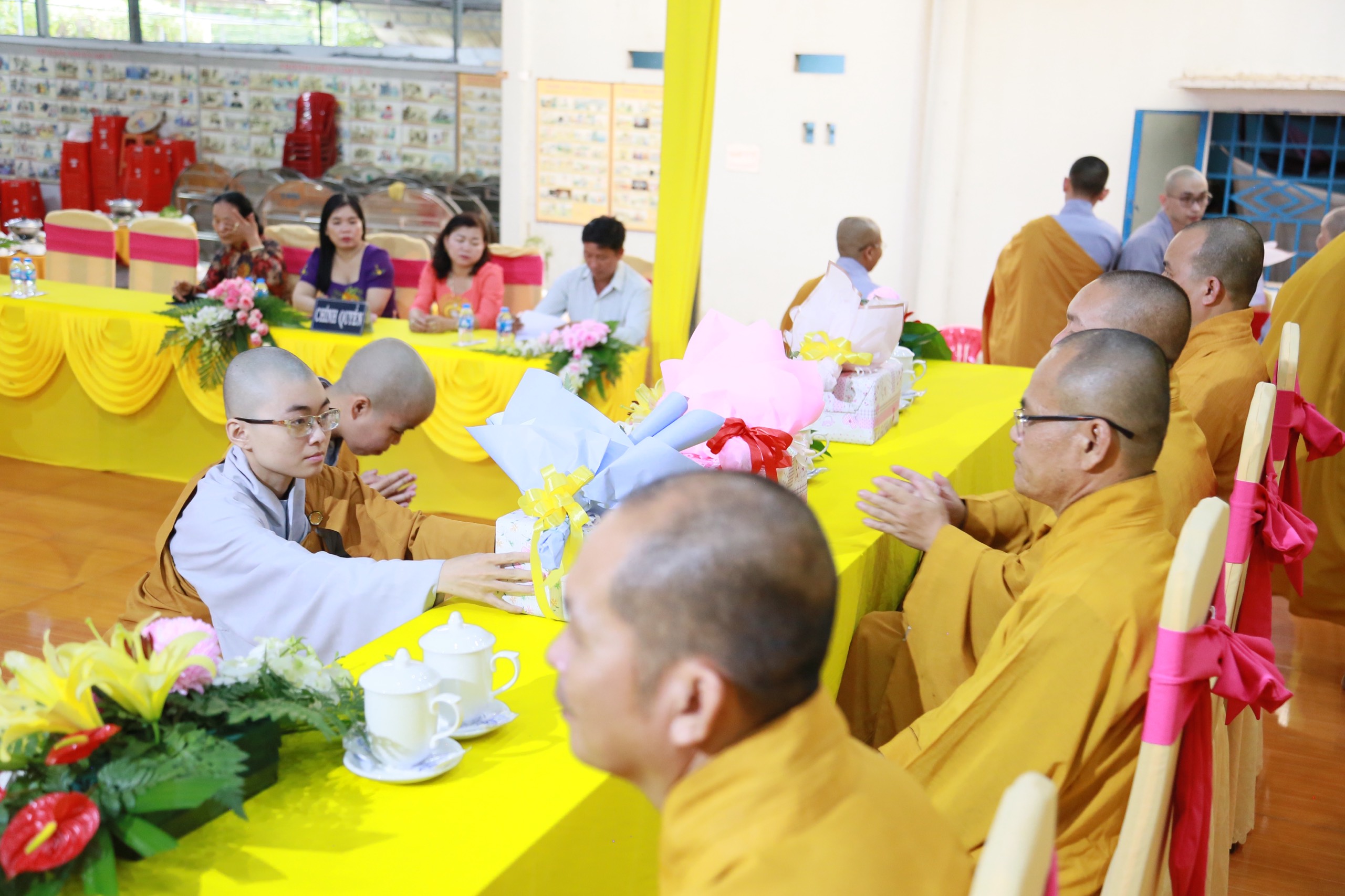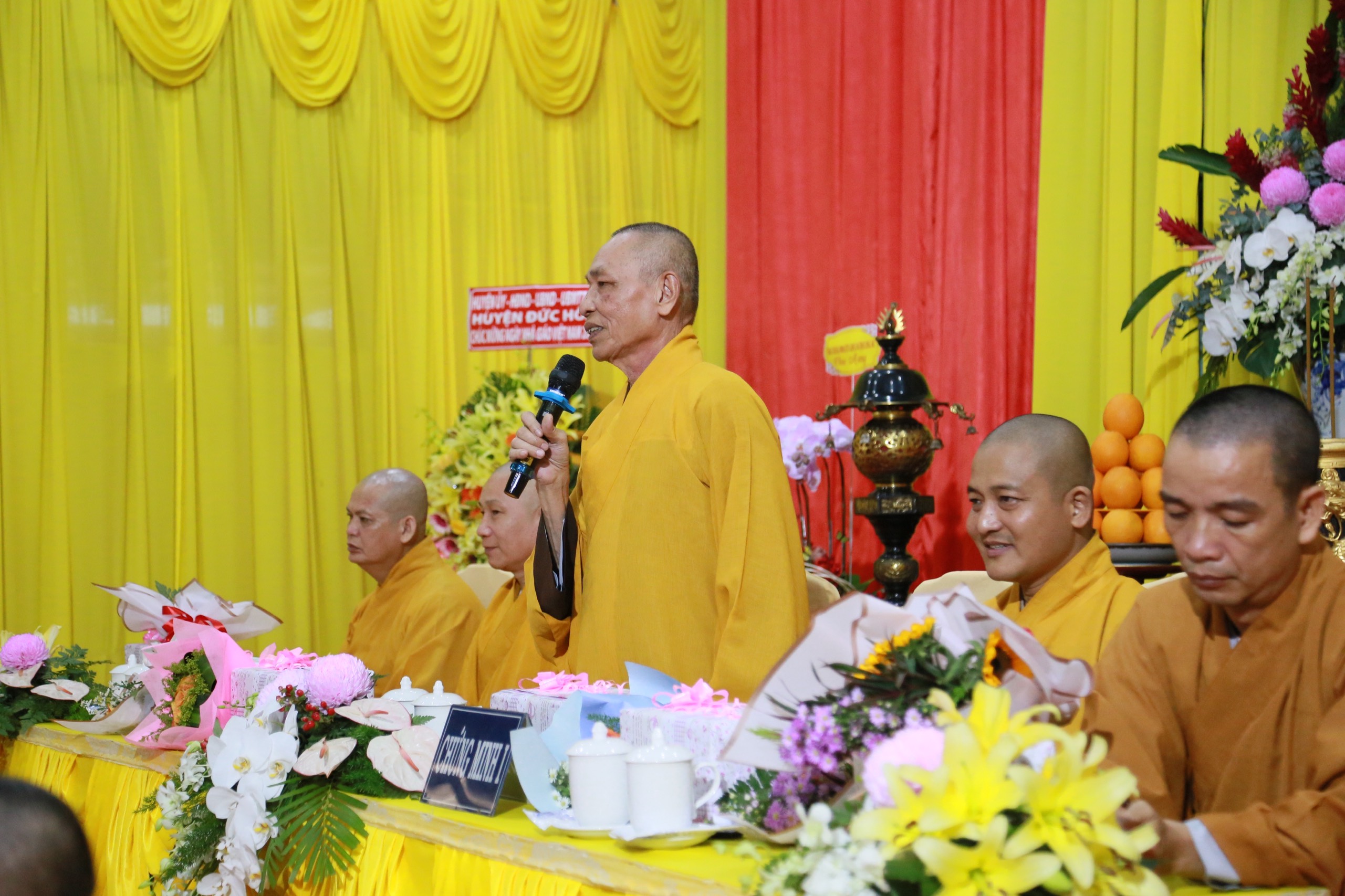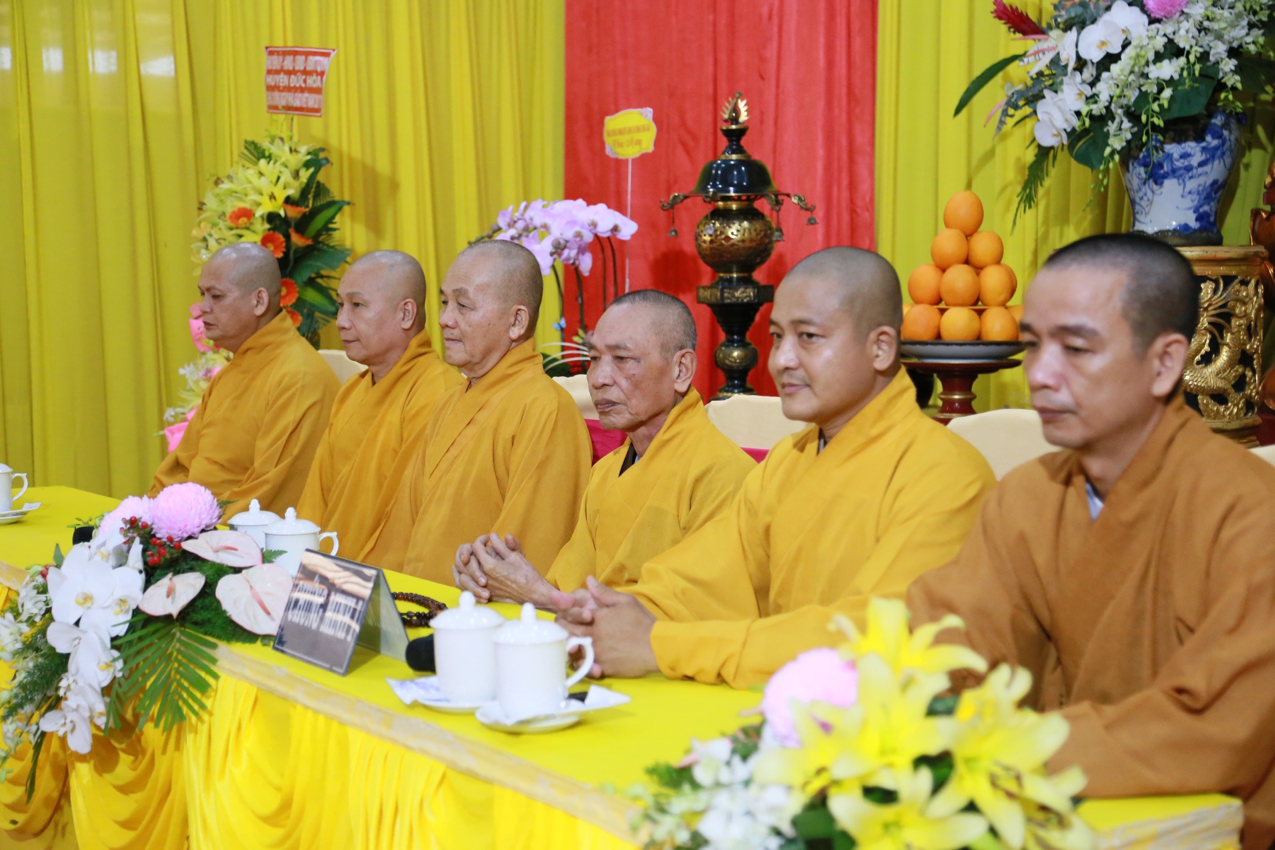 Quang lâm chứng minh có: HT Thích Thiện Huệ – Chứng minh BTS GHPGVN tỉnh Long An. HT Thích Minh Thiện – UV HĐTS, Phó Trưởng Ban hoằng pháp TƯ, Trưởng BTS GHPGVN tỉnh Long An, Hiệu trưởng Trường trung cấp Phật học Long An. TT Thích Đức Hoàng – Phó trưởng BTS GHPHVN tỉnh Long An. Đại đức Thích Lệ Duyên – Phó trưởng ban kiêm Chánh thư ký BTS GHPHVN tỉnh Long An, Trưởng BTS GHPGVN huyện Đức Hoà; TT Thích Nhuận Thành – Trưởng ban Kinh tế Tài chánh GHPGVN tỉnh Long An, Trưởng ban Trưởng ban Kinh tế Tài chánh GHPGVN huyện Đức Hoà, thành viên Ban bảo trợ Trường TCPH Long An. ĐĐ Thích Thiện Trực – Phó Trưởng ban Kinh tế Tài chánh GHPGVN tỉnh Long An, Phó Trưởng Ban Trị sự kiêm Trưởng ban Từ thiện Xã hội GHPGVN huyện Đức Hòa, thành viên Ban bảo trợ Trường TCPH Long An. Đại đức Thích Minh Trí – Ủy viên BTS GHPGVN tỉnh Long An – Chánh Thư ký BTS GHPGVN huyện Đức Hoà. ĐĐ Thích Trí Huệ – Ủy viên BTS GHPGVN tỉnh Long An – Phó thư ký kiêm Chánh văn phòng BTS GHPGVN huyện Đức Hoà. Ni Trưởng TN Diệu Nhàn – Phó Trưởng ban Ni giới GHPGVN tỉnh Long An, Trưởng ban Ni giới GHPGVN huyện Đức Hòa. Sư cô TN Huệ Nghiêm – Phó Trưởng ban Hướng dẫn Phật tử GHPGVN tỉnh Long An. Sư cô TN Trung Hiếu Trưởng Ban hướng dẫn Phật tử GHPGVN huyện Đức Hoà. Cùng chư tôn đức Tăng Ni trụ trì các tự viện, Tăng Ni sinh khoá 8 Trường trung cấp Phật học Long An đồng quang lâm tham dự.