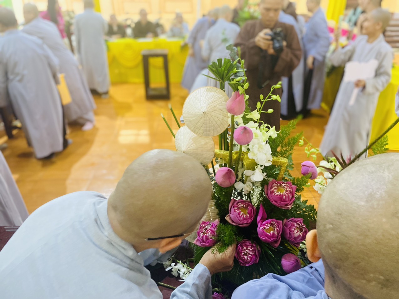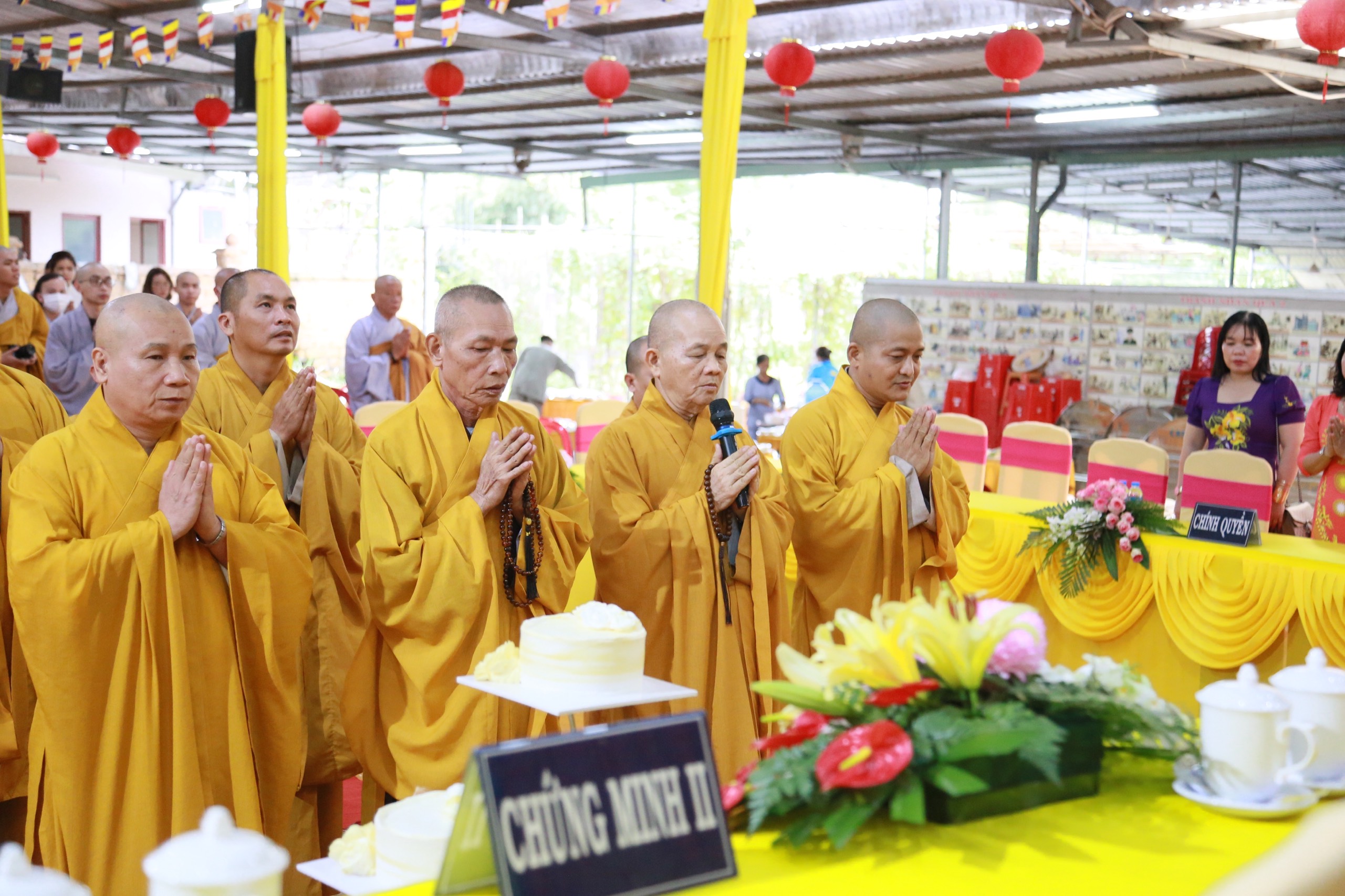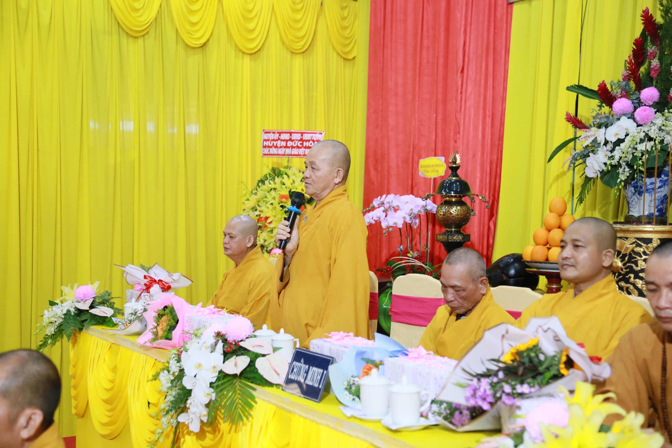 Quang lâm chứng minh có: HT Thích Thiện Huệ – Chứng minh BTS GHPGVN tỉnh Long An. HT Thích Minh Thiện – UV HĐTS, Phó Trưởng Ban hoằng pháp TƯ, Trưởng BTS GHPGVN tỉnh Long An, Hiệu trưởng Trường trung cấp Phật học Long An. TT Thích Đức Hoàng – Phó trưởng BTS GHPHVN tỉnh Long An. Đại đức Thích Lệ Duyên – Phó trưởng ban kiêm Chánh thư ký BTS GHPHVN tỉnh Long An, Trưởng BTS GHPGVN huyện Đức Hoà; TT Thích Nhuận Thành – Trưởng ban Kinh tế Tài chánh GHPGVN tỉnh Long An, Trưởng ban Trưởng ban Kinh tế Tài chánh GHPGVN huyện Đức Hoà, thành viên Ban bảo trợ Trường TCPH Long An. ĐĐ Thích Thiện Trực – Phó Trưởng ban Kinh tế Tài chánh GHPGVN tỉnh Long An, Phó Trưởng Ban Trị sự kiêm Trưởng ban Từ thiện Xã hội GHPGVN huyện Đức Hòa, thành viên Ban bảo trợ Trường TCPH Long An. Đại đức Thích Minh Trí – Ủy viên BTS GHPGVN tỉnh Long An – Chánh Thư ký BTS GHPGVN huyện Đức Hoà. ĐĐ Thích Trí Huệ – Ủy viên BTS GHPGVN tỉnh Long An – Phó thư ký kiêm Chánh văn phòng BTS GHPGVN huyện Đức Hoà. Ni Trưởng TN Diệu Nhàn – Phó Trưởng ban Ni giới GHPGVN tỉnh Long An, Trưởng ban Ni giới GHPGVN huyện Đức Hòa. Sư cô TN Huệ Nghiêm – Phó Trưởng ban Hướng dẫn Phật tử GHPGVN tỉnh Long An. Sư cô TN Trung Hiếu Trưởng Ban hướng dẫn Phật tử GHPGVN huyện Đức Hoà. Cùng chư tôn đức Tăng Ni trụ trì các tự viện, Tăng Ni sinh khoá 8 Trường trung cấp Phật học Long An đồng quang lâm tham dự.