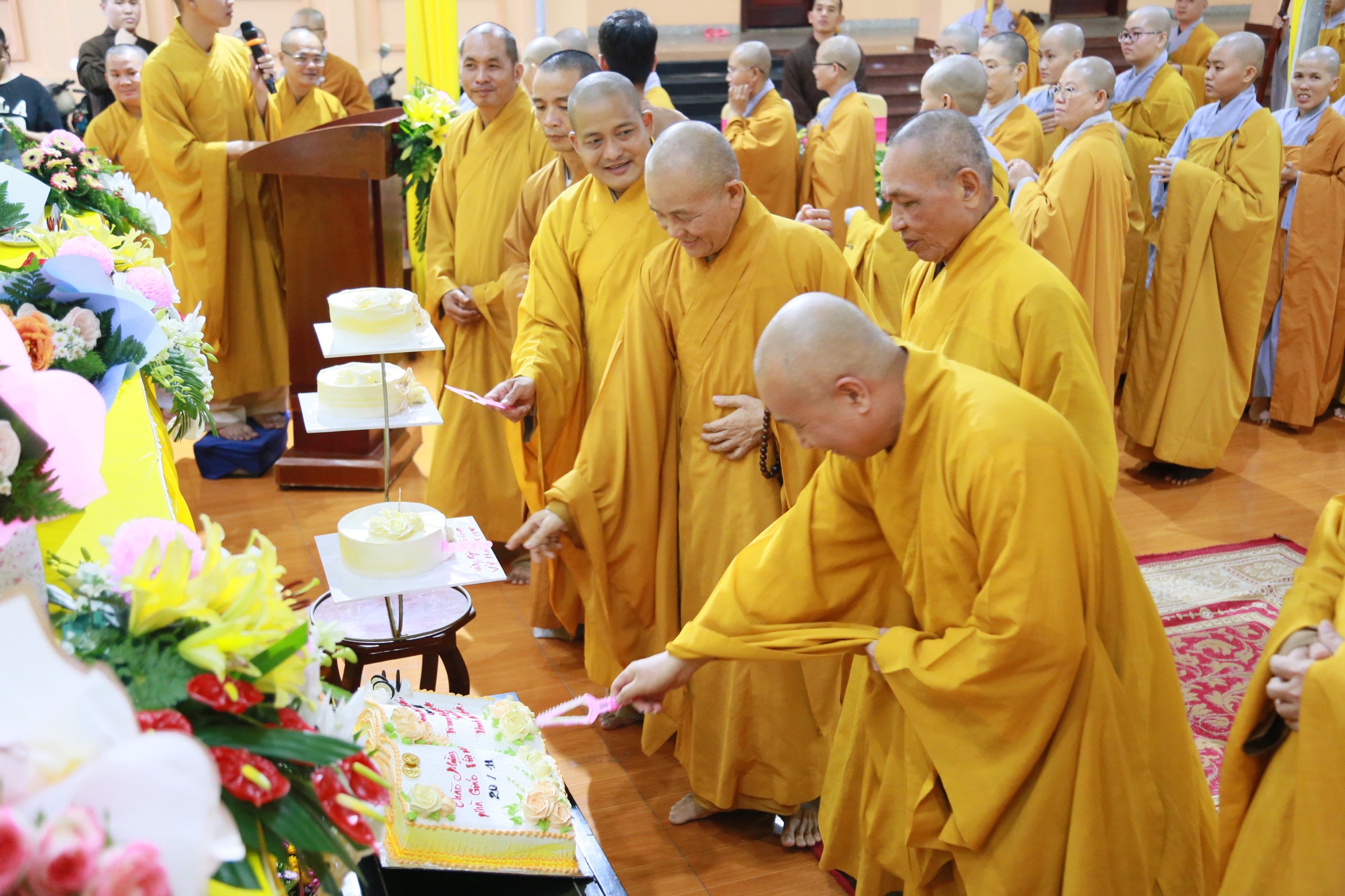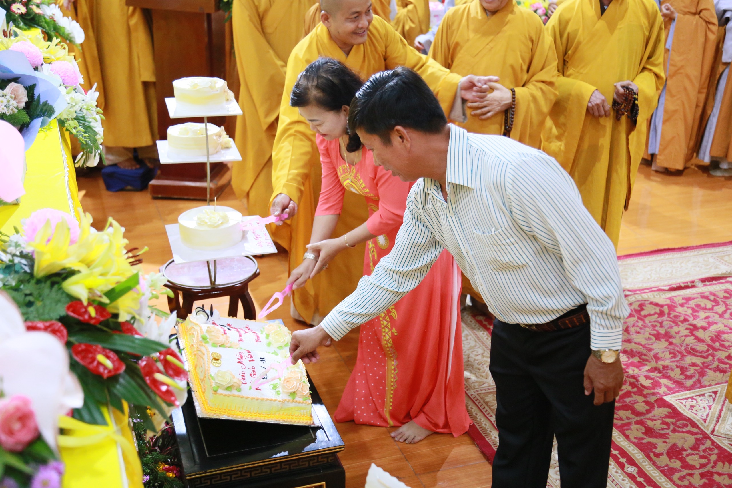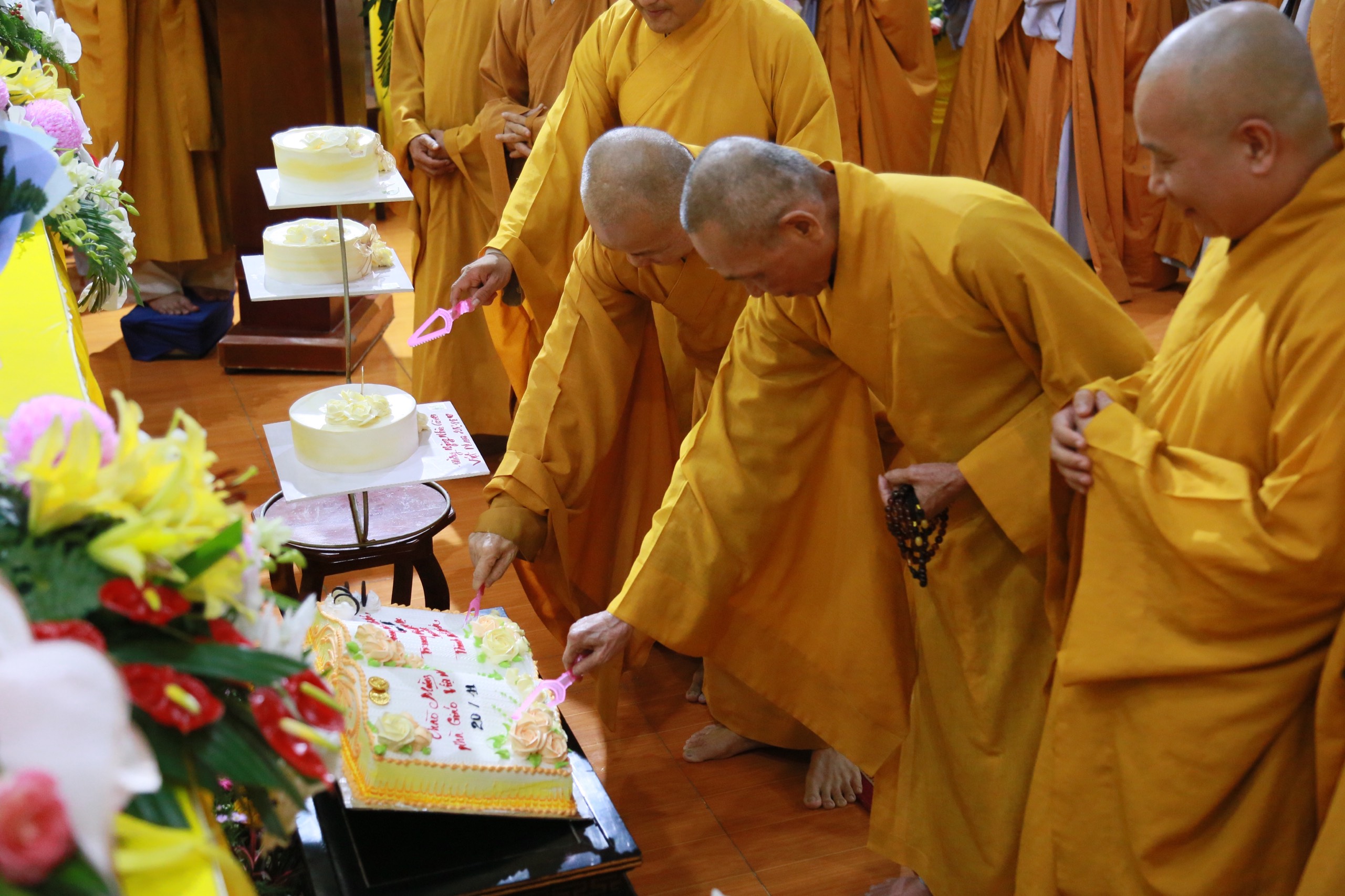 Kết thúc buổi lễ Chư tôn đức đã cắt bánh kem chúc mừng buổi lễ thành tựu, Đại chúng cùng chụp ảnh lưu niệm trong niềm hoan hỷ.