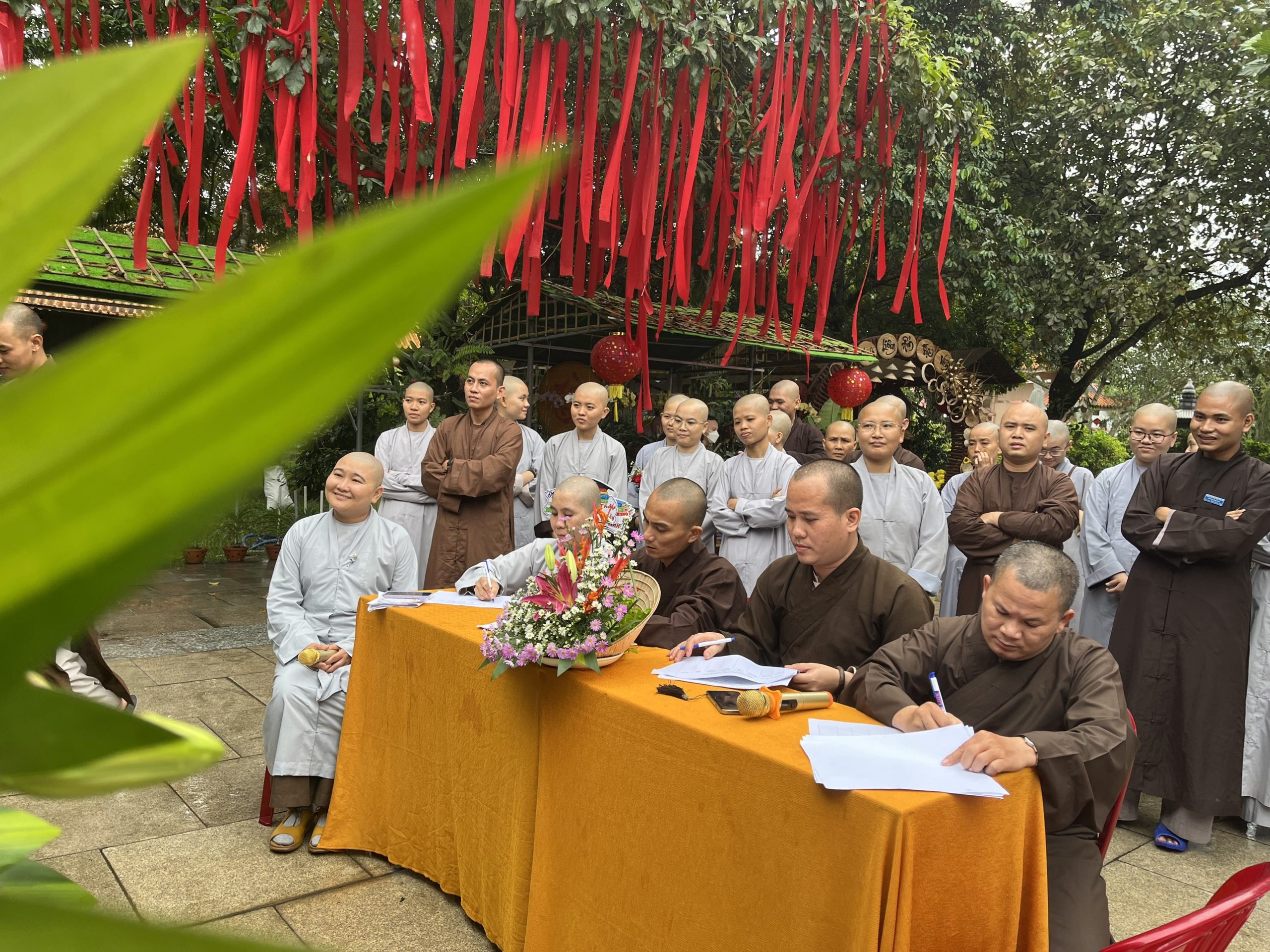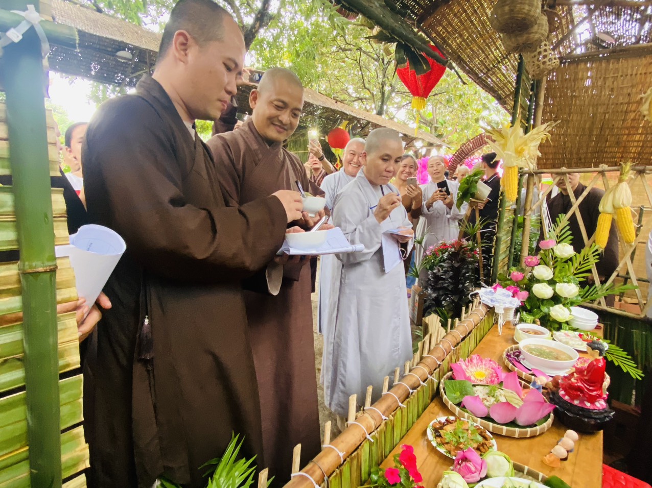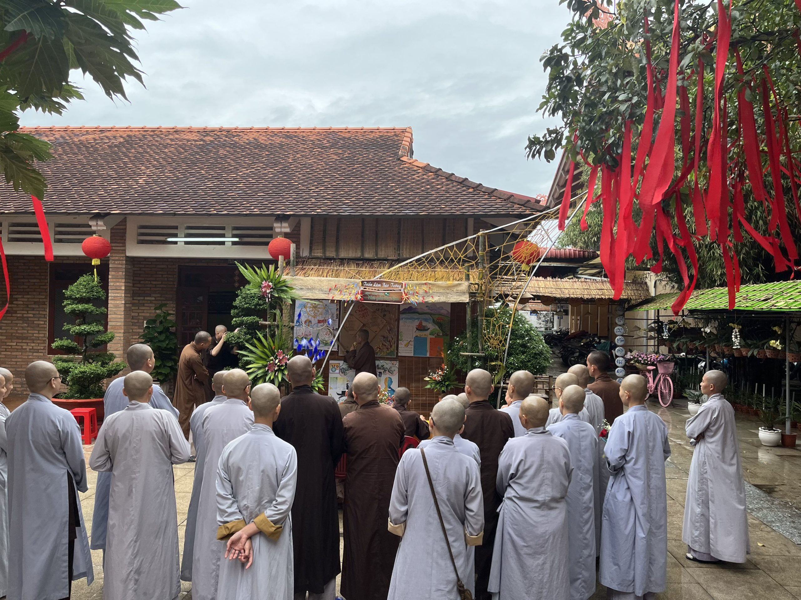 Kết thúc buổi lễ Chư tôn đức đã cắt bánh kem chúc mừng buổi lễ thành tựu, Đại chúng cùng chụp ảnh lưu niệm trong niềm hoan hỷ.