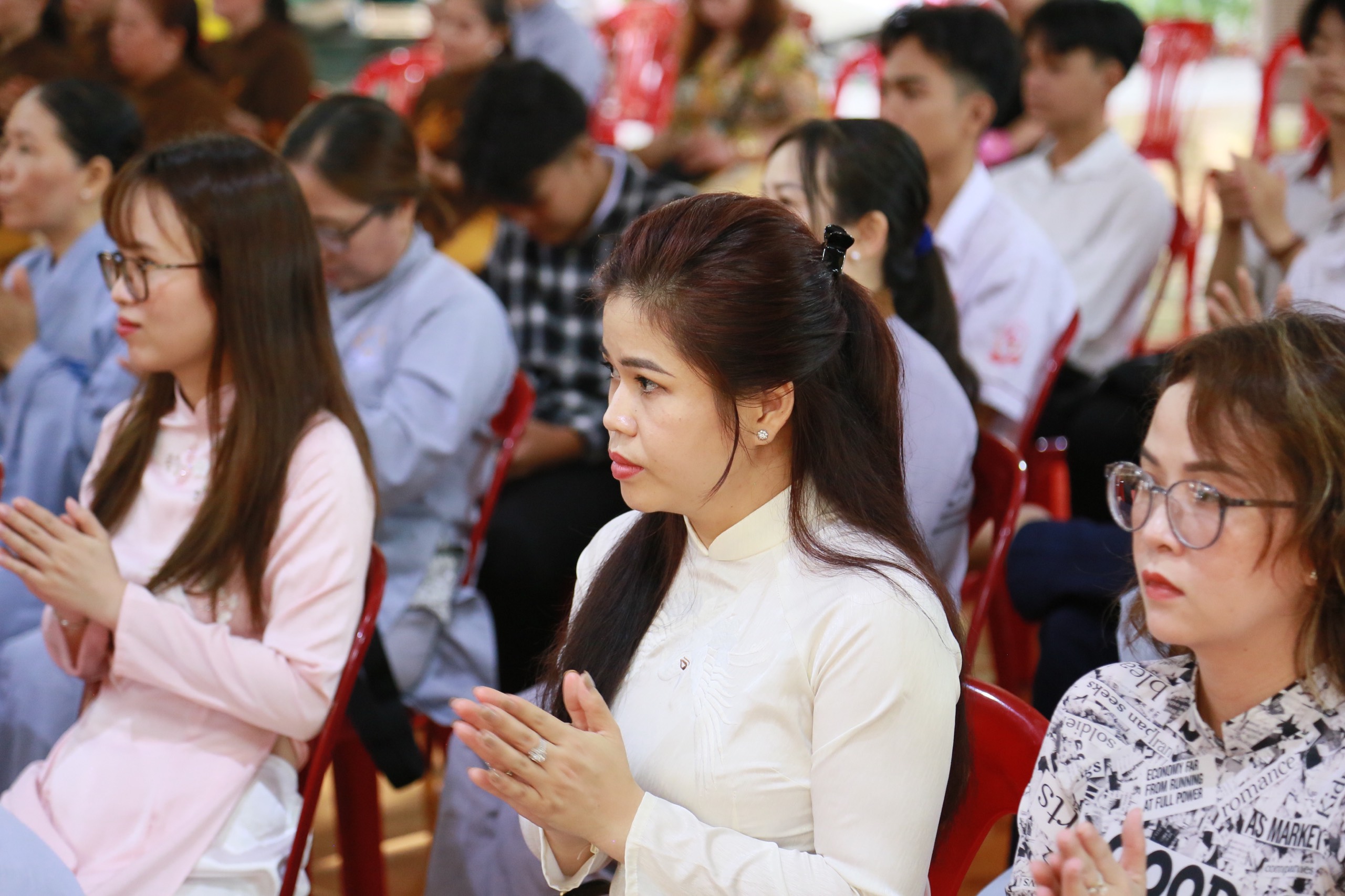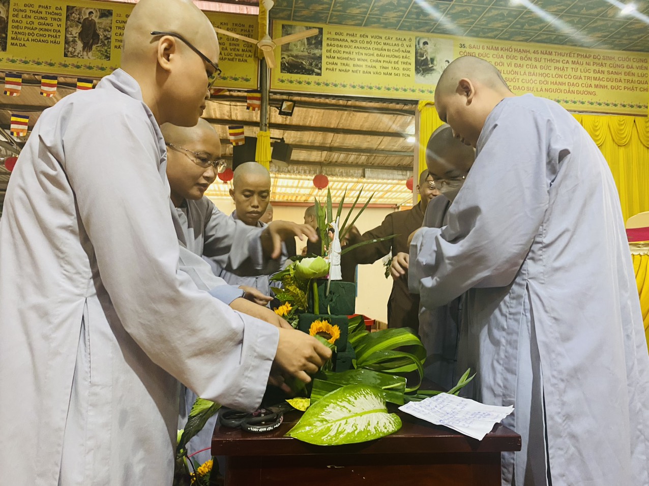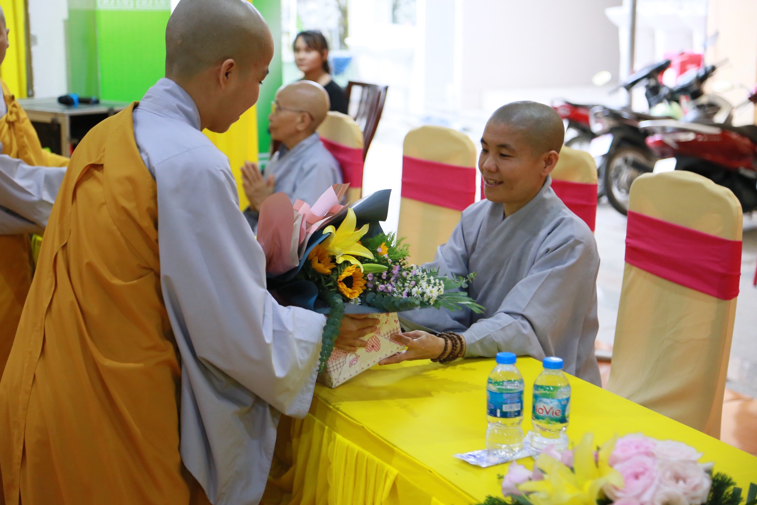 Buổi lễ còn được lắng nghe lời đạo từ cao quý từ Hoà thượng Thích Thiện Huệ – Chứng minh BTS GHPGVN tỉnh Long An, Chứng minh Trường trung cấp Phật học Long An. “Là người phát nguyện xuất gia tiếp nối sự nghiệp của Tổ thầy nhất là các Tăng Ni sinh nếu không có năng lực để chuyển hoá thân tâm, hộ trì Chánh pháp và tiếp dẫn hậu lai thì đó là một lỗi lớn đối với những ân đức mà mình đã thọ nhận. Hãy là một Tăng Ni sinh gương mẫu, để sau khi tốt nghiệp trở về nơi trụ xứ của mình đem những gì mình học được hỗ trợ thầy Tổ, phụng sự cho Đạo pháp”. Cuối lời Hoà thượng gửi lời tri ân và chúc sức khoẻ đến đại chúng.