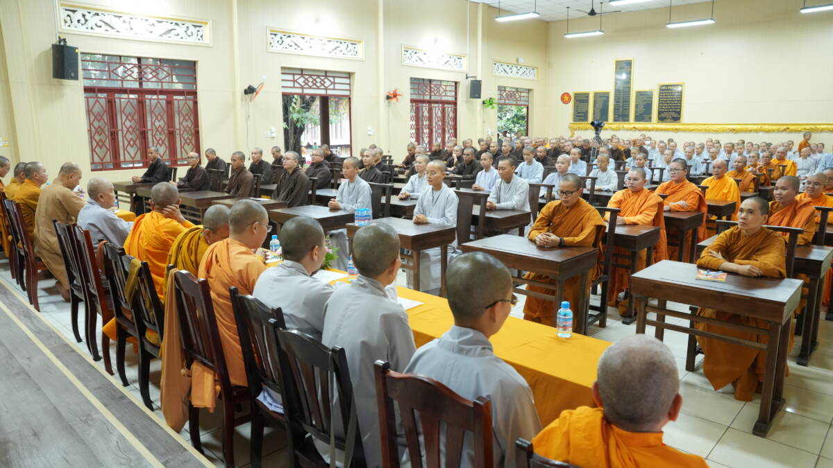 Kỳ thi Tuyển sinh khóa XII, niên khóa 2026 – 2029, Trường TCPH tỉnh tiếp tục chào đón các Tăng Ni sinh tham gia dự học. Đây là niềm hoan hỷ để Ban Giám hiệu trường tiếp tục con đường đào tạo Tăng Ni sinh trẻ để phụng sự cho Đạo pháp và Dân tộc.” – Thầy Hiệu trưởng nhấn mạnh. Ban đạo từ tại lễ khai mạc, HT. Thích Phước Tú đã sách tấn Tăng Ni sinh trước khi bước vào kỳ thi chính thức: “Trong môi trường Phật học nên giữ gìn pháp Lục hòa, biết thương yêu và hỗ trợ lẫn nhau, để cùng tu cùng tiến trên bước đường tu học lâu dài. Bên cạnh đó, việc chấp hành nội quy, tề chỉnh oai nghi tế hạnh, trau dồi Giới – Định – Tuệ để xứng đáng là người kế thừa, cho Phật giáo mai sau…”