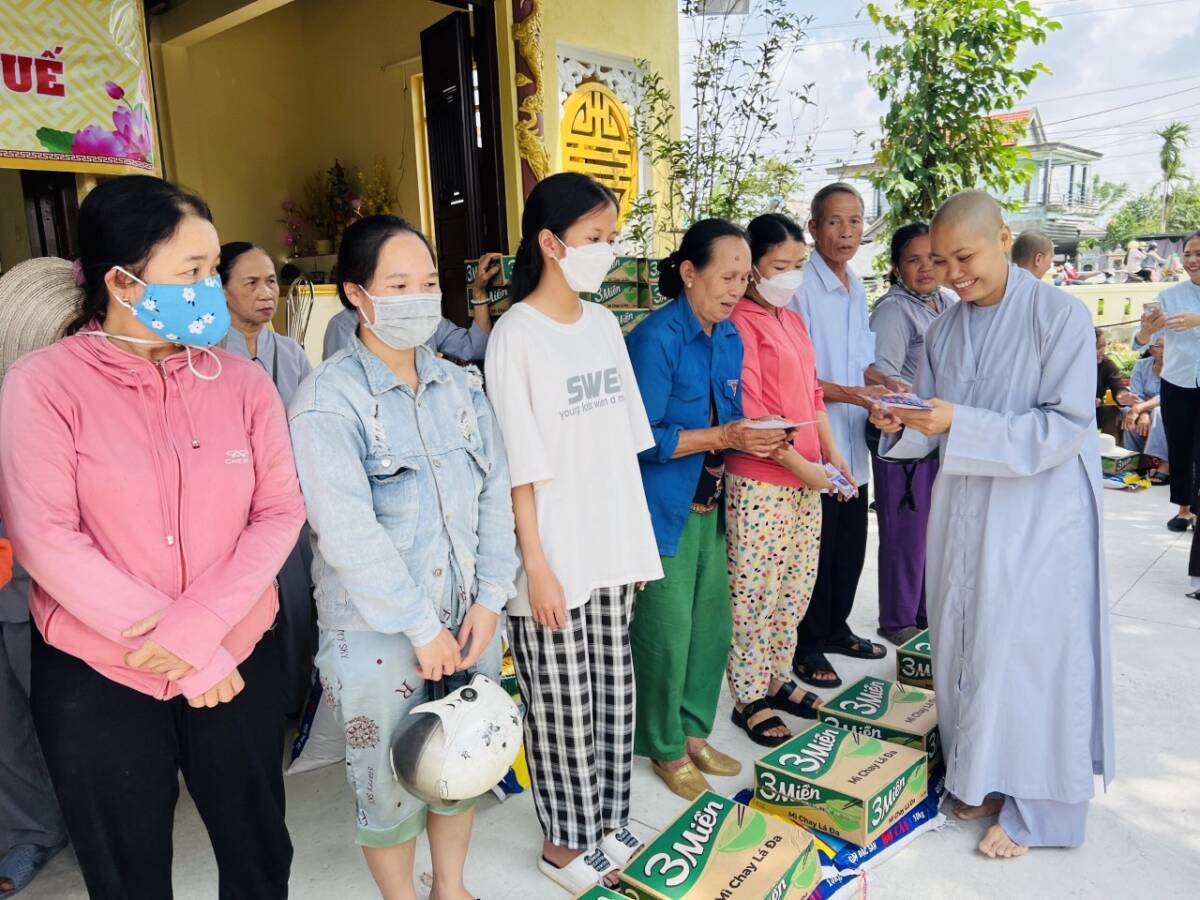 Tại buổi trao quà Hòa thượng Thích Khế Chơn đã thăm hỏi, động viên bà con vượt qua khó khăn trong cuộc sống, gia đình hạnh phúc.